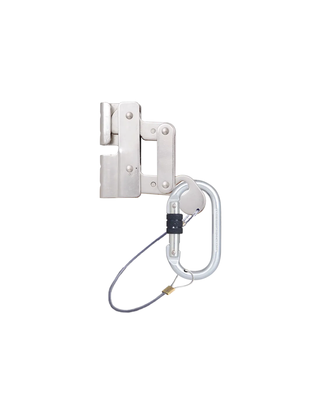 Der mitlaufende Auffanggerät KRATOS SAFETY besteht aus Edelstahl, es wird mit 1 Stahlkarabiner mit Schraubverschluss geliefert, der nicht verloren gehen kann. Es verfügt über ein System, das ein Verkehren des Geräts auf der Ankerlinie verhindert. Sein Design ermöglicht es, das mitlaufende Auffanggerät auf jeder Höhe am Kabel zu installieren/deinstallieren.