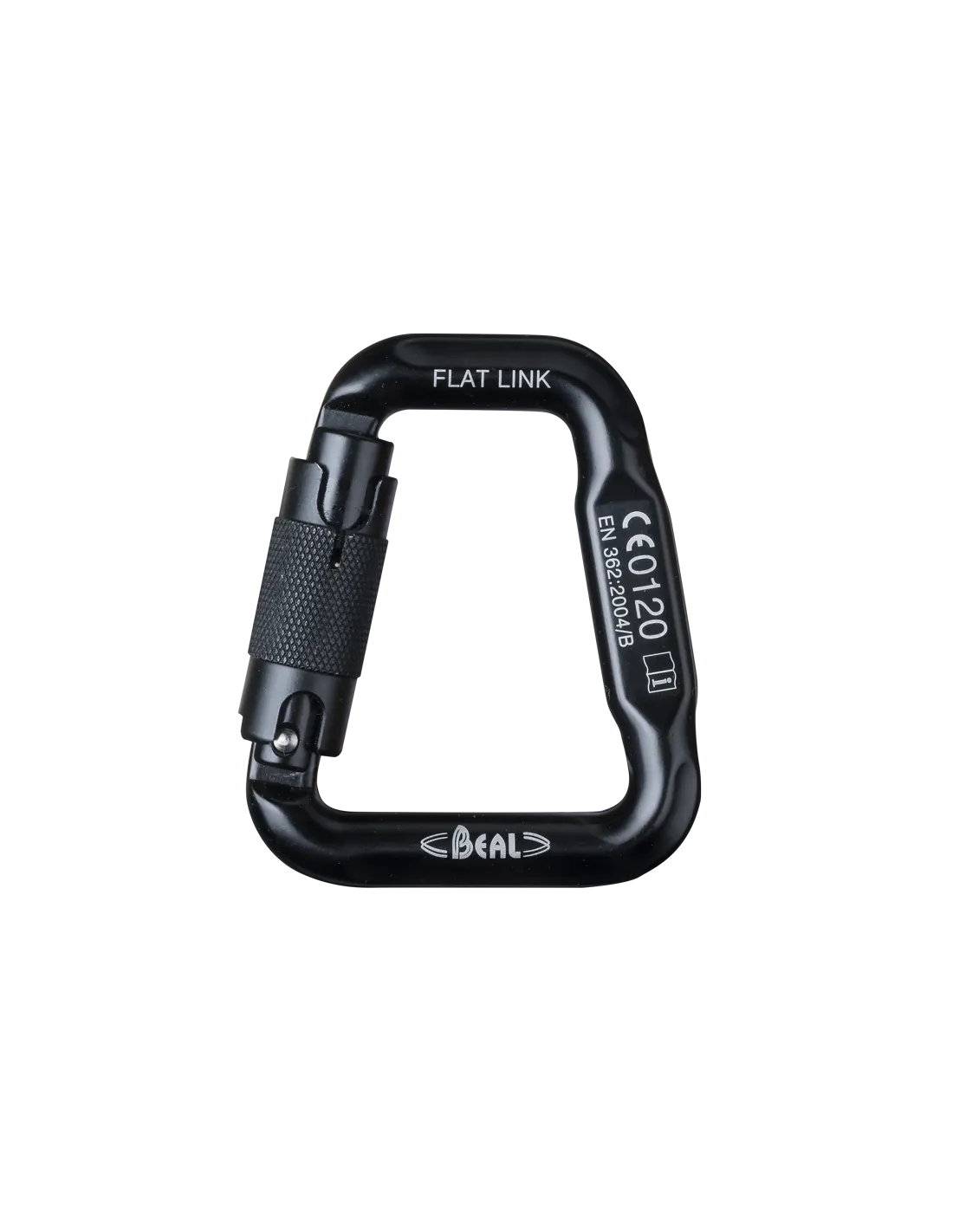 Symmetrisch, trapezförmig geformter Aluminiumkarabiner, der dazu dient, die oberen und unteren Teile eines Ganzkörpergurts zu verbinden.