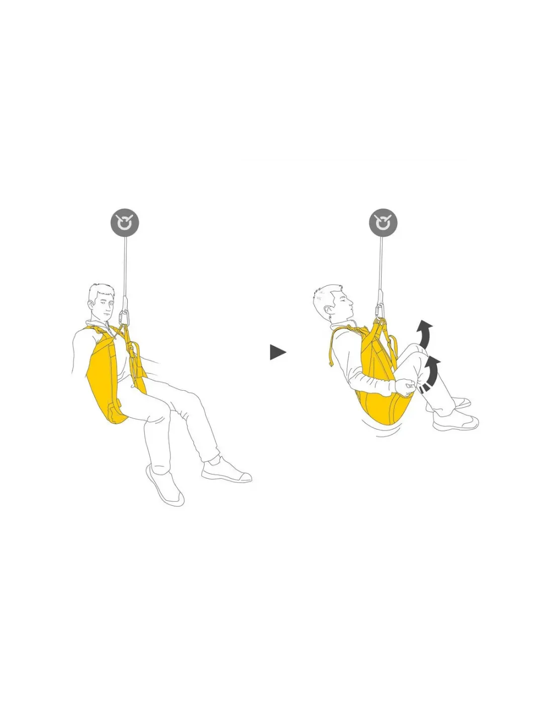 - Die ergonomische Form ermöglicht es dem Evakuierten, leicht im Dreieck zu sitzen und macht das Hängen komfortabler als mit einem klassischen Evakuierungsdreieck