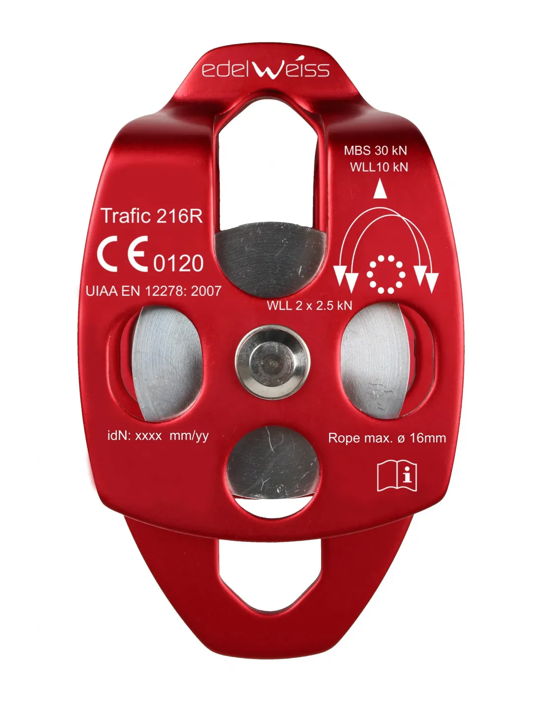 TRAFIC 216R ist eine mobile Doppelrollenplatte, die für Flaschenzugsysteme mit hoher Effizienz (Kugellager) ausgelegt ist und Seile bis zu 16 mm akzeptiert. Ausgestattet mit einem unteren Bügel zur Erstellung komplexer Systeme.