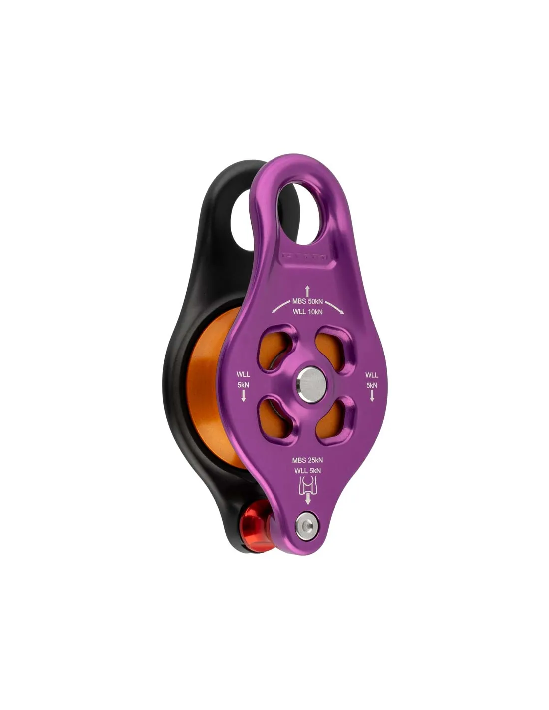 Der Querträger am unteren Ende des Blocks ist nicht nur extrem stark (5 kN WLL, 25 kN MBS), sondern kann auch mit einfachen Werkzeugen abgeschraubt werden. An seiner Stelle kann der Benutzer eine Vielzahl anderer Zubehörteile aus der DMM-Kollektion einschrauben, um den Flaschenzug zu erweitern und den PINTO in einem viel breiteren Anwendungsspektrum einzusetzen.