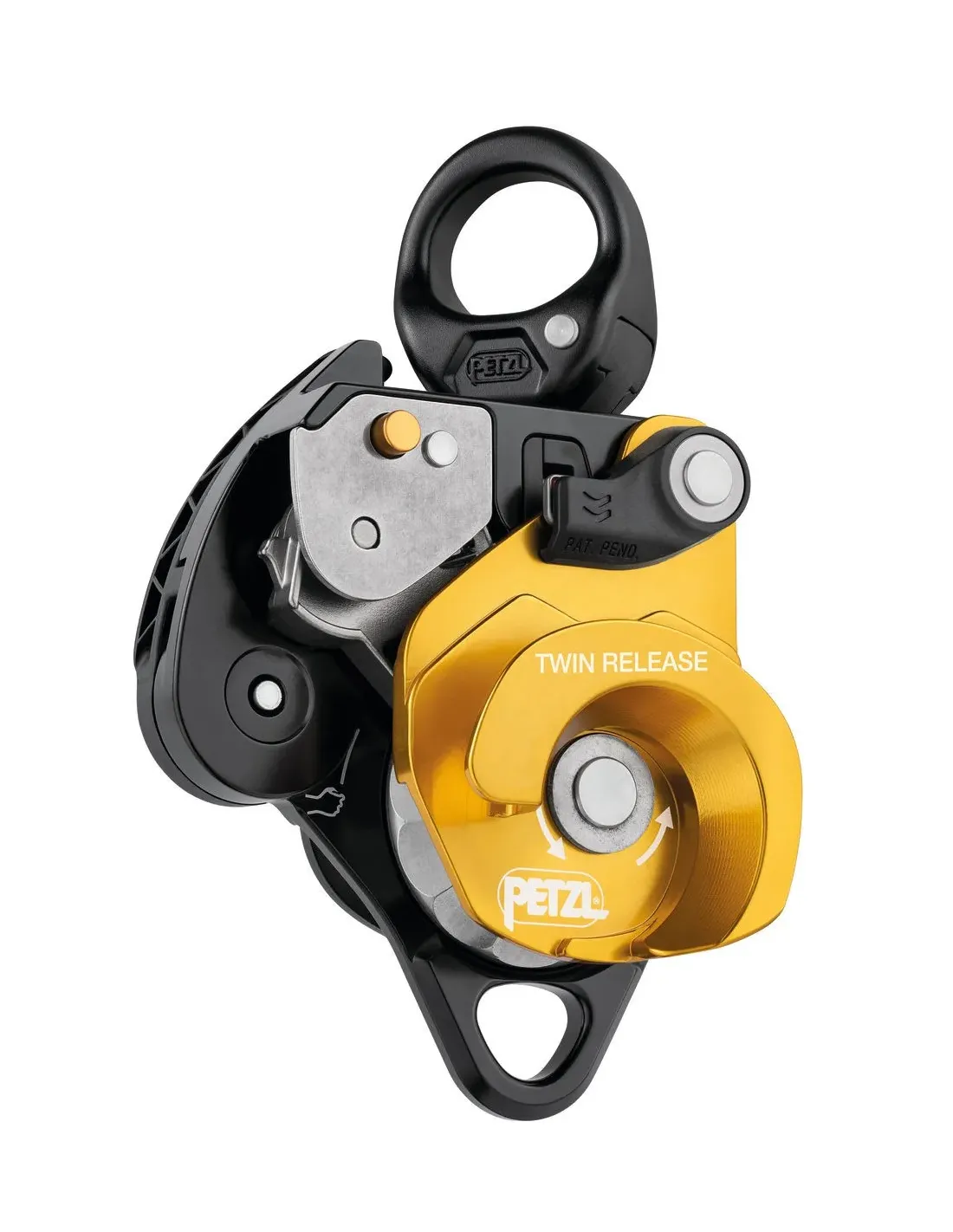 Freigebbar, die TWIN RELEASE Fortschrittsaufnahme-Rolle ist für den Aufbau von 4:1 Flaschenzugsystemen für Arbeiten in engen Räumen oder für technische Rettungen konzipiert. Das Lösen der Nocke ist mit dem ergonomischen Griff möglich. Die in die bewegliche Seitenplatte integrierte Bremse und die Hauptrolle mit einseitiger Drehung bieten zusätzliche Bremswirkung und bessere Kontrolle beim Absenken schwerer Lasten. Die beiden Rollen bieten eine hervorragende Zieheffizienz. Der Wirbel erleichtert die Bedienung, indem er es ermöglicht, die Rolle unter Last auszurichten und Karabiner, Seile oder Schlingen direkt anzuschließen.