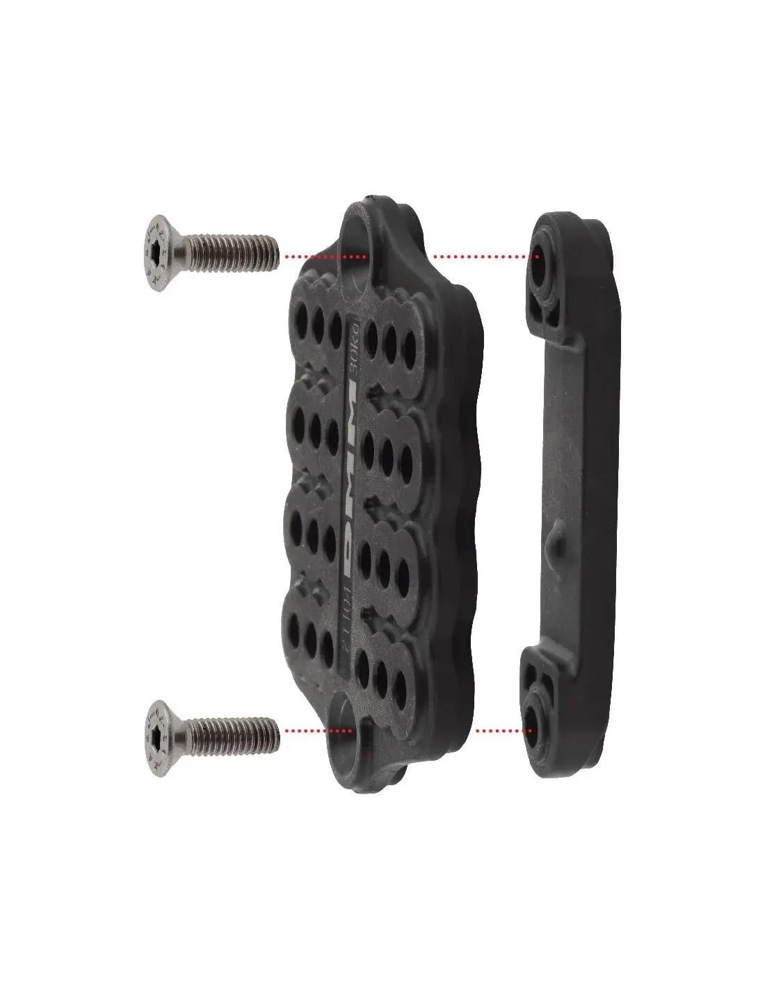 Der Parkplatz ist eine Adapterplatte, die die Installation einer Reihe von DMM-Komponenten auf einem Substrat wie Gurtband ermöglicht. Micro Vault, Stowaway und andere Komponenten können über die Vielzahl von Löchern an der Platte befestigt werden, was die Aufbewahrungsmöglichkeiten für Ihr Geschirr, Ihren Arbeitsgürtel oder Ihre Tasche erheblich erweitert.