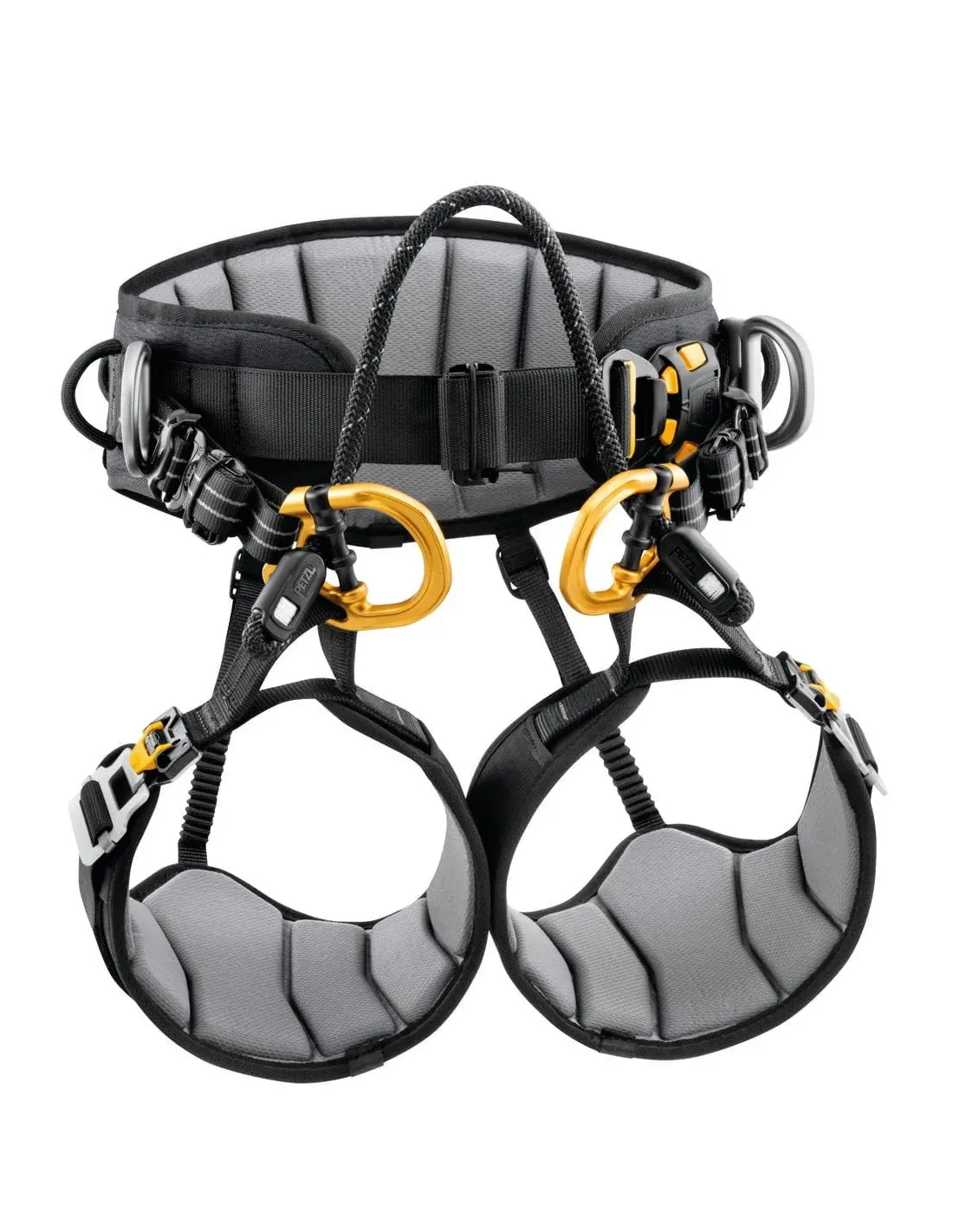 - halbsteifer, breiter Hüftgurt und Beinschlaufen für hervorragende Positionierung; geformt und mit Schaumstoffpolsterung für Komfort während der Aufhängung ausgekleidet