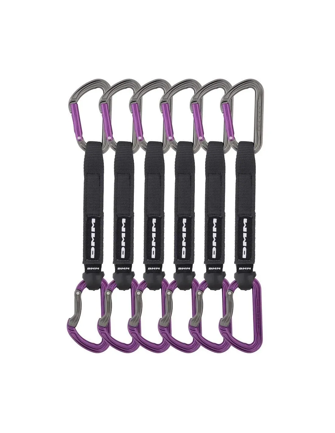 Sportkarabiner sind auf dickem Nylonband montiert und schaffen langlebige Express-Sets, die leicht zu ziehen sind, wenn Sie Routen arbeiten.