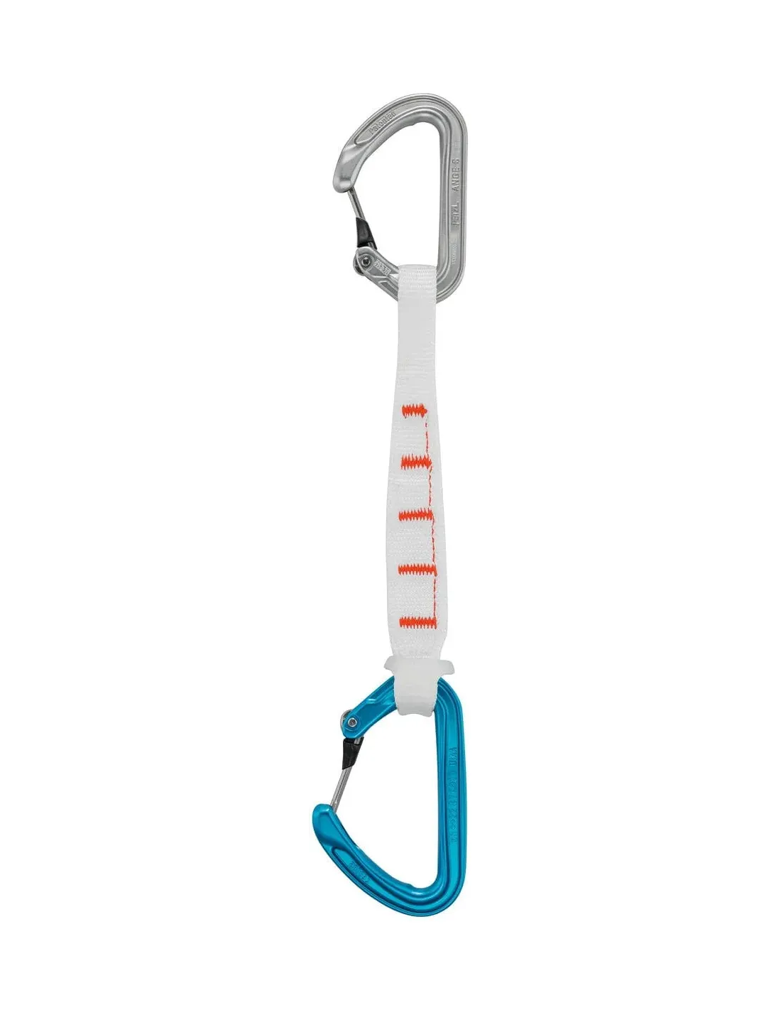 • die Laschen am unteren Ende des Karabiners helfen, die STRING an Ort und Stelle zu halten, um die Express-Schlinge besser entlang ihrer Hauptachse auszurichten