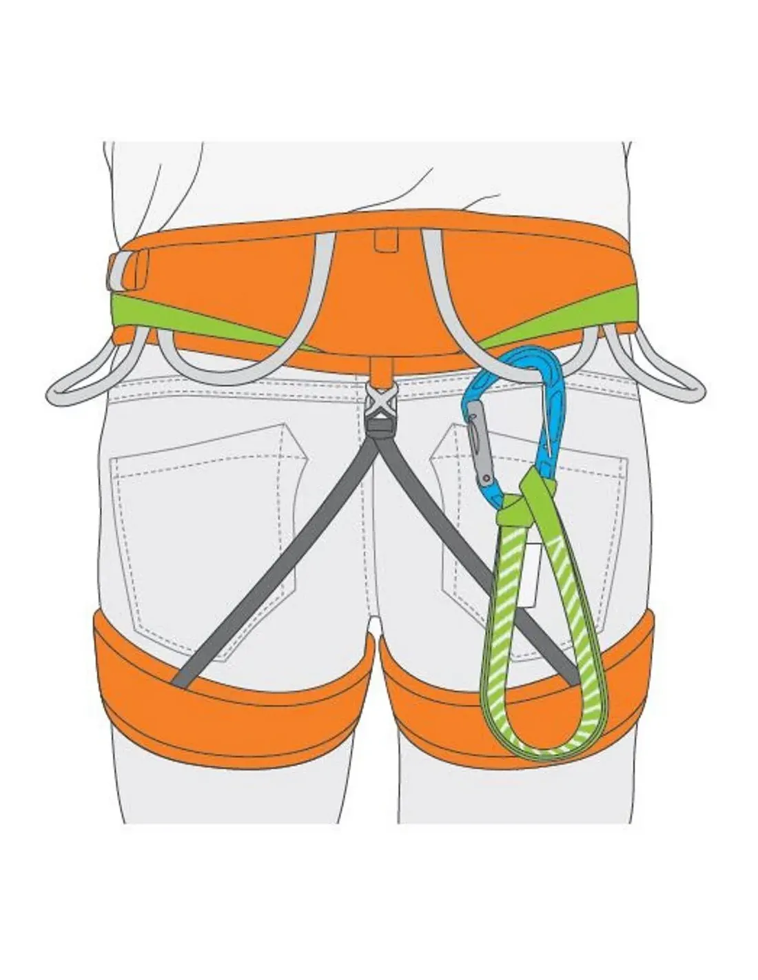 Dank seiner flexiblen Schlinge kann TRICKY bequem am Gurt getragen werden: Die Länge des Systems kann halbiert und das hängende Volumen reduziert werden.