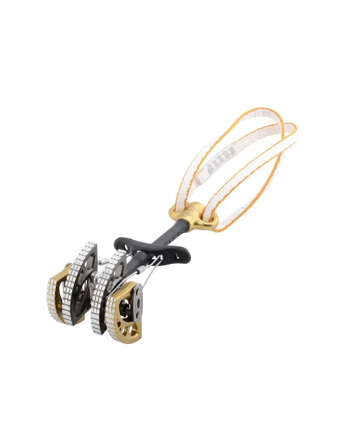 Single stem, dual axle design gives Dragon cams 360° flexibility and a substantial expansion range, increasing performance in sub-optimal placements and helping you get the right piece first time. The Dragon cams hot-forged thumb press gives stable handling and reduces fumbling from gloved hands and pumped fingers. It allows the Dragon to have an extendable sling with no strength penalty, reducing the number of quickdraws needed to extend placements and minimising rack weight.