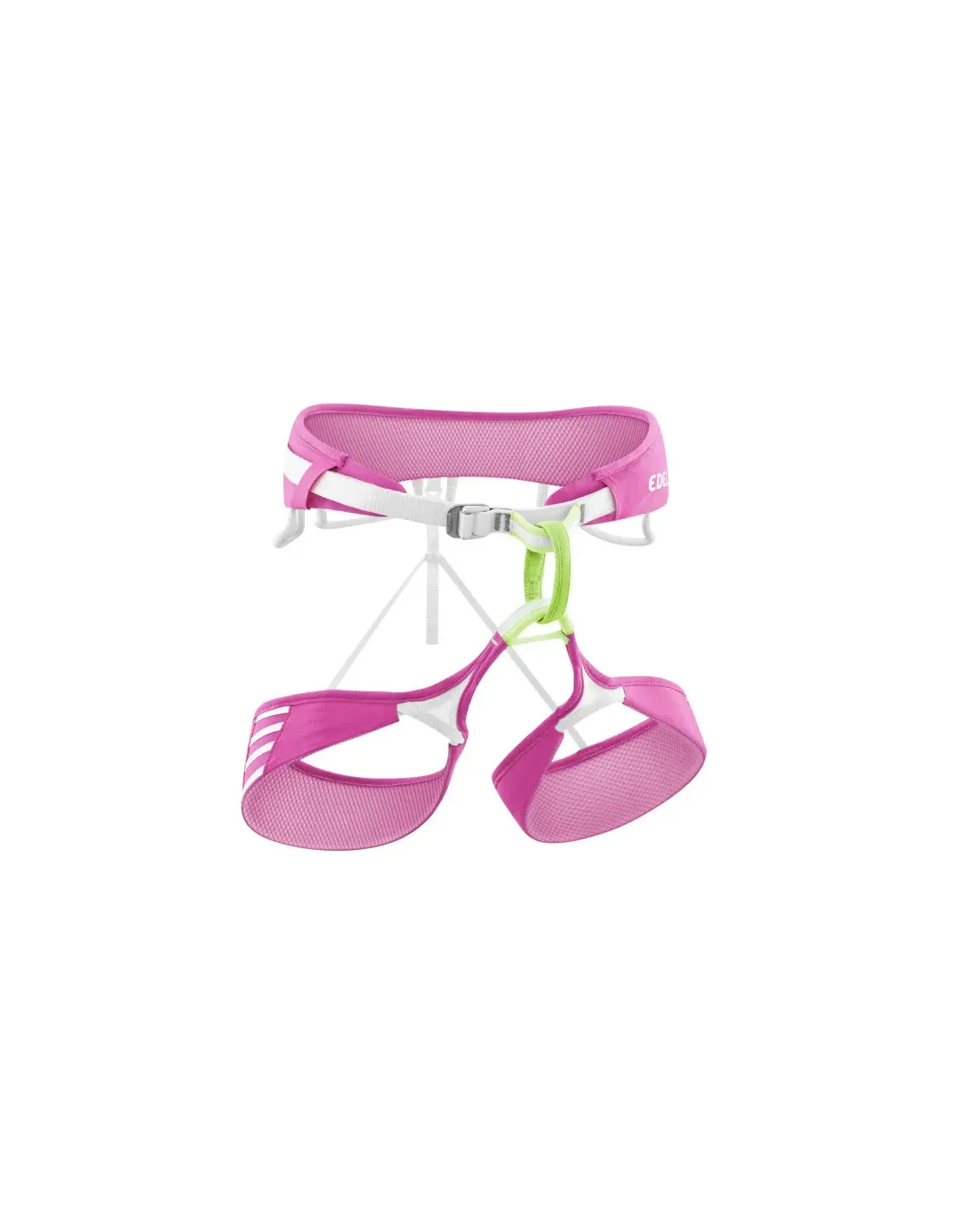 - Vier symmetrische, ummantelte Materialschlaufen, zwei Befestigungsmöglichkeiten für Eisschrauben-Clips und eine Chalkbag-Schlaufe hinten