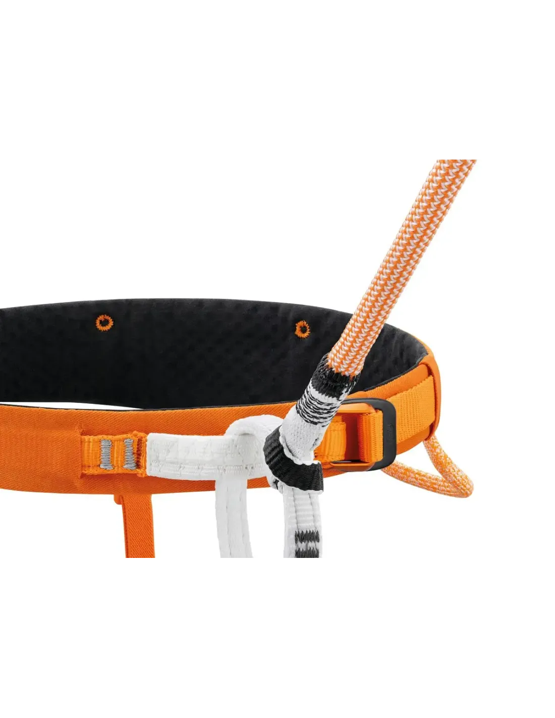 - Die hochmodulige Polyethylen (HMPE) genähte Bandschlinge (Petzl-Patent) ermöglicht es Ihnen, die Leine mit einem kompakten Ankerstich an Ihrem Gurtzeug zu befestigen; sie nimmt weniger Platz in der Sicherungsschlaufe ein und ist leicht zu sehen, wenn man Seil oder Ausrüstung am Anker verwaltet