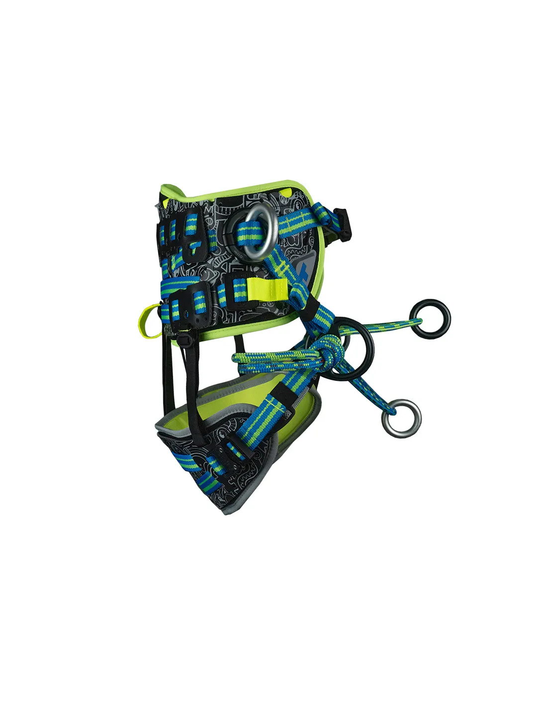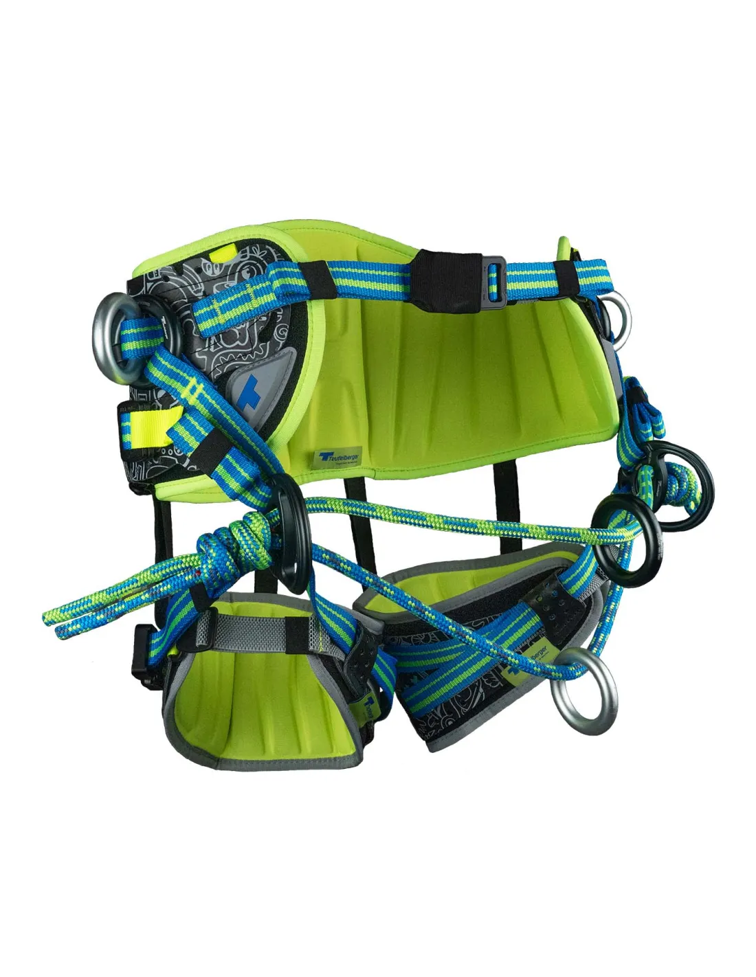 The treeMOTION PRO boasts opening rings at the side attachment points. This type of design allows for much easier adjustment of the webbing connecting the thigh loops to the waist belt. It also allows for eventual replacement of the rings, thus extending the use of the harness.