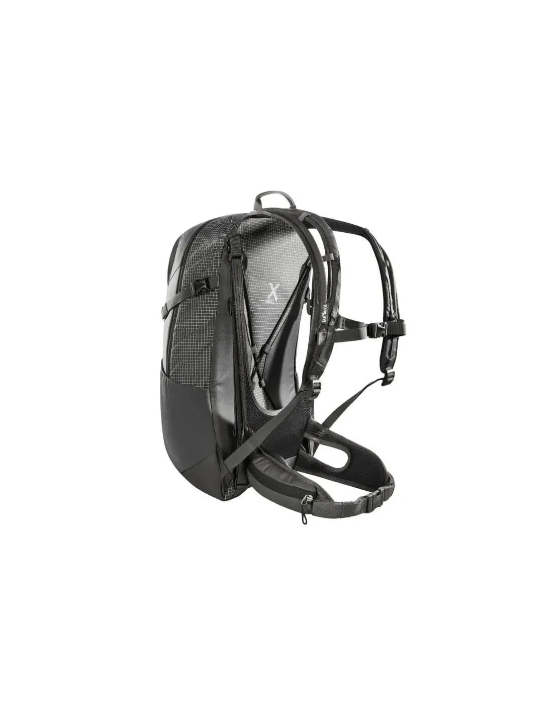 The X Vent Zero carrying system developed by Tatonka does without a mesh back so that the hiking backpack rests only minimally on the back. This allows sweat moisture to evaporate optimally. The backpack is comfortably fixed with padded, ventilated shoulder straps, ventilated hip belt and adjustable chest strap.