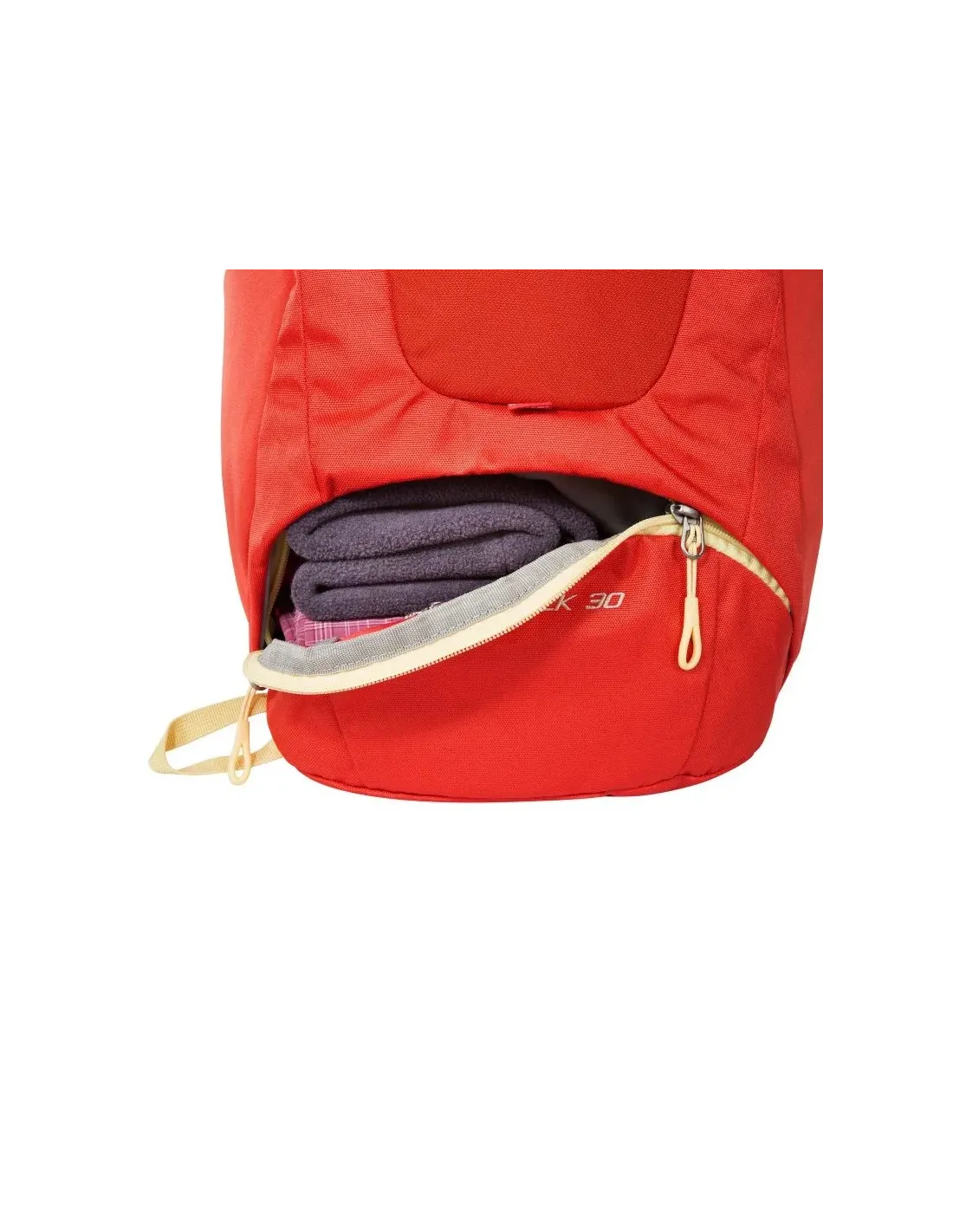 The Hiking Pack 30 has a practical subdivision into main and bottom compartment, a zipped compartment on the front, elastic side pockets and a zipped pocket on the hip fin. It also is equipped with a hiking pole holder and a drinking system preparation. And thanks to the integrated rain cover even the weather becomes a minor matter.