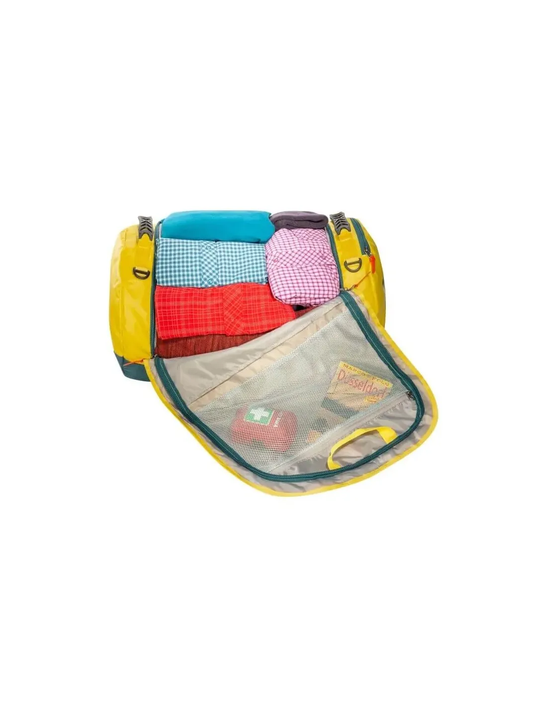 The highlight: The Tatonka Barrel is equipped with backpack shoulder straps, which can be stowed in a zipper pocket on the side. And two rubberized handles on both sides facilitate handling, for example when placing the bag in the boot of a car.