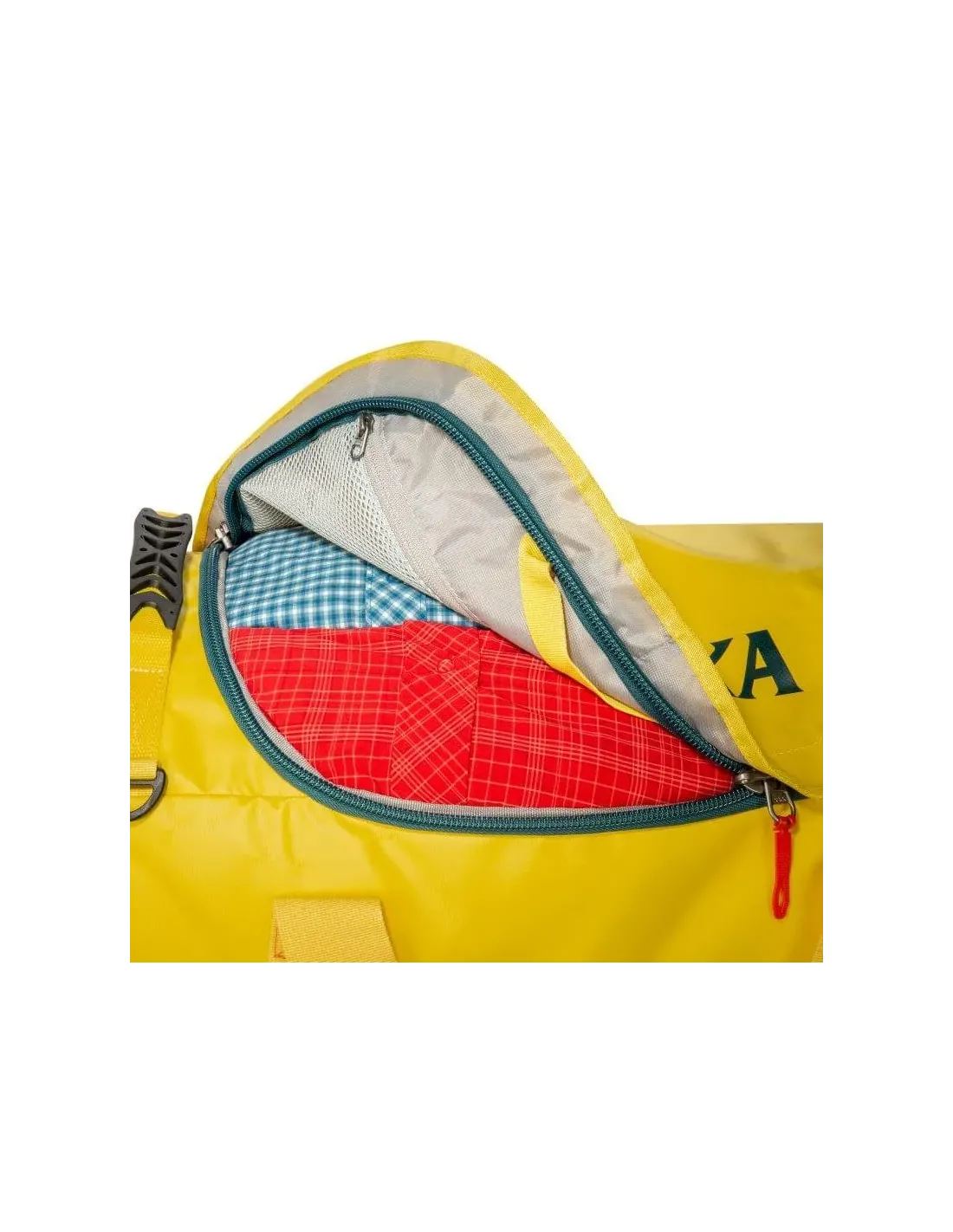 The bag is provided with a large opening so that you can keep an overview when packing. Under the lid is a flat mesh pocket with zipper, smaller utensils can also be stored in two insert pockets in the main compartment.