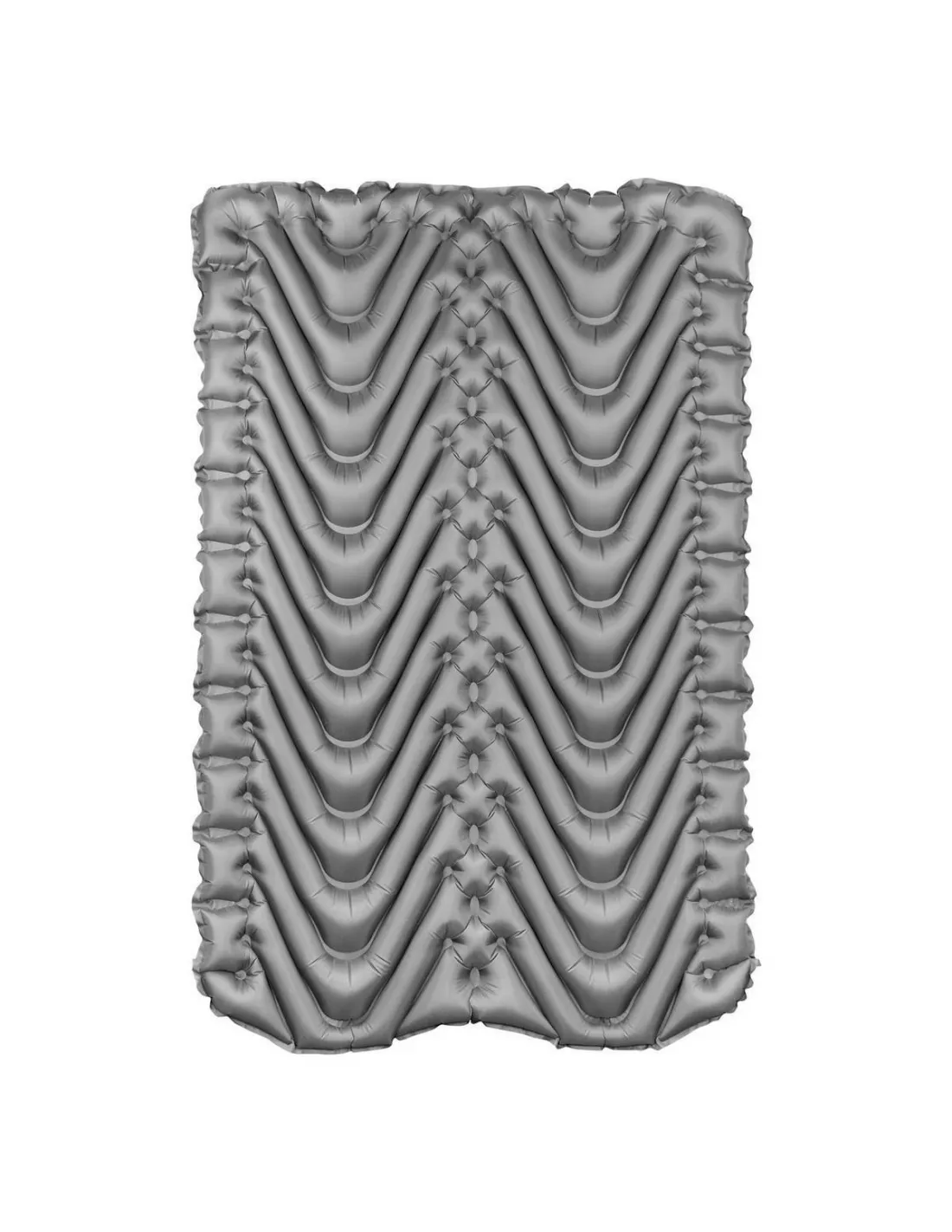KLYMIT Double V inflatable 2 person mat is a double mattress with V-shaped chambers. It is a comfortable double width mattress ideal for two people. Two rows of raised V-shaped chambers create ultra-comfortable air chambers that provide support to key body points. The advanced design stabilizes the mattress minimizing the floating and bouncing sensation when one person changes position. The mattress can be conveniently inflated using the Stuff Sack compression bag.