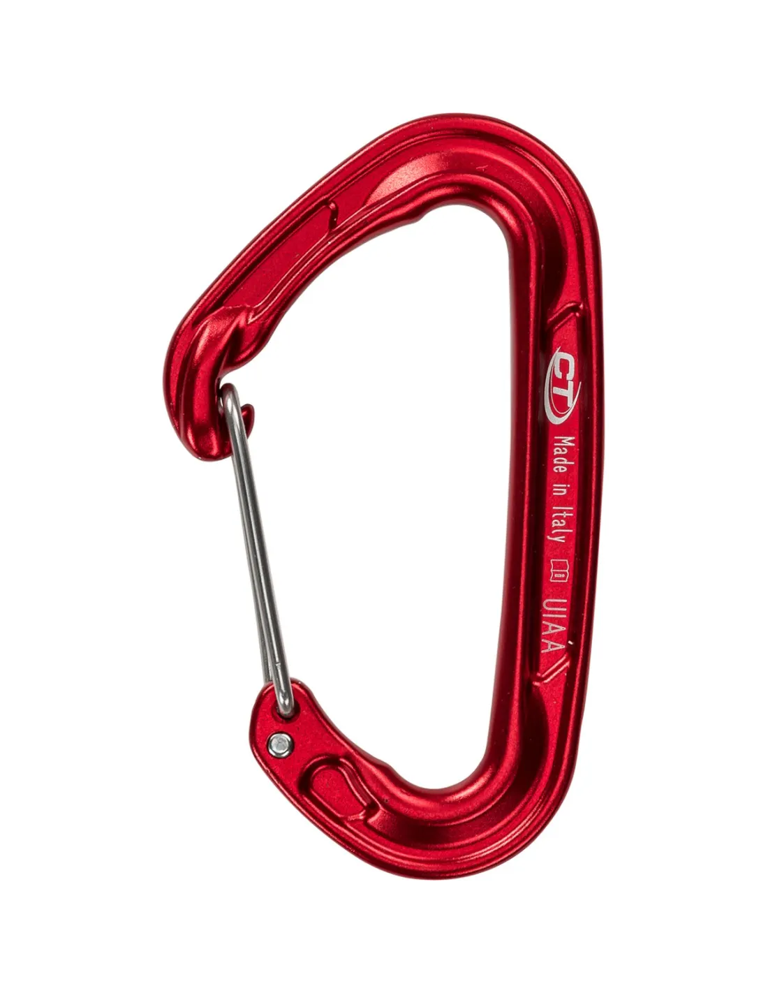 Hot-forged light alloy carabiner with wire gate, ideal for mountaineering, multi-pitch sport climb and big wall.