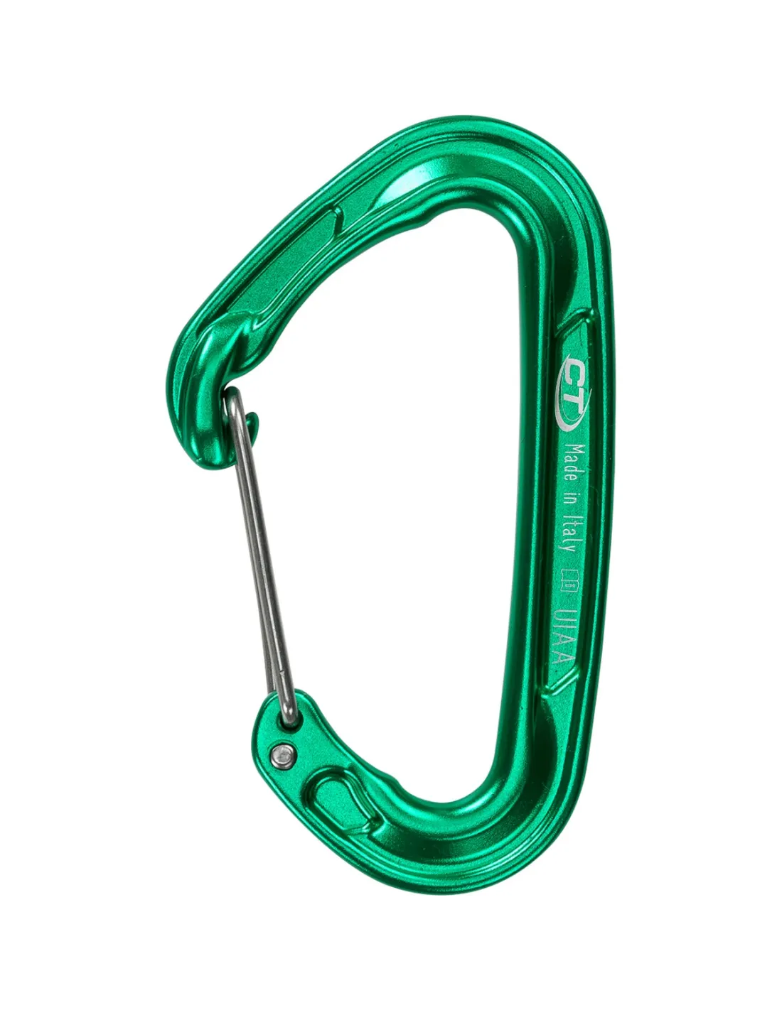 Hot-forged light alloy carabiner with wire gate, ideal for mountaineering, multi-pitch sport climb and big wall.