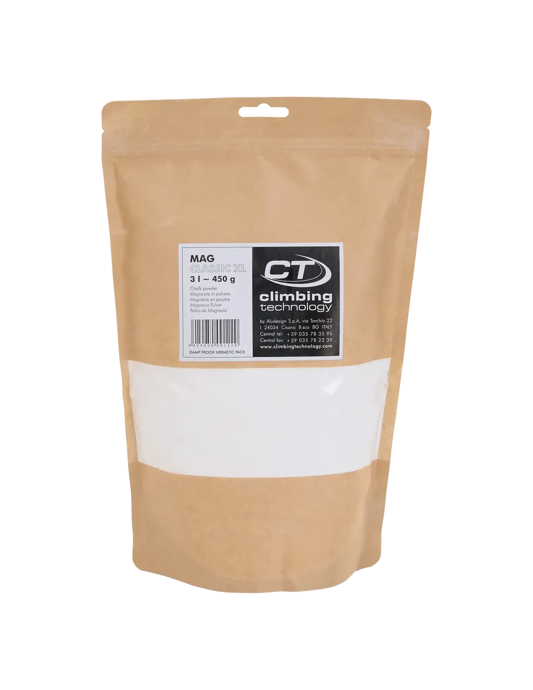 The Climbing Technology Mag Crunchy 450 g is an essential piece of equipment for any climber who plans to achieve their climbing goals in the field, or who wants to improve their grip while training on campus or gripboarding. Due to its texture, it will be ideal for bouldering use. It will keep your hands dry, greatly improving your grip both in crevasses and on small edges. It will be an indispensable support when overcoming your own weaknesses and your next climbing challenges.