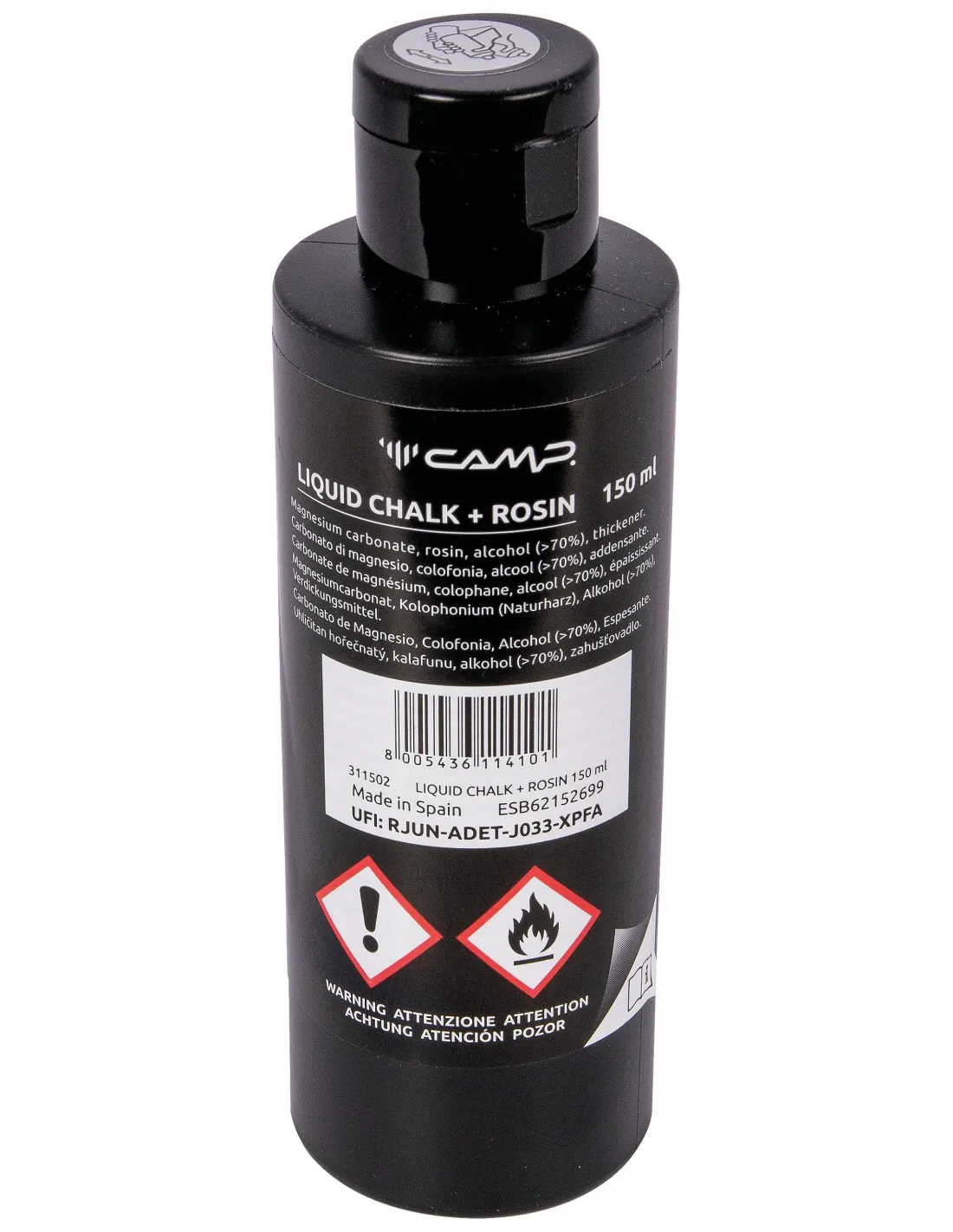 Fast drying alcohol-based (>70%) liquid chalk that creates a great chalk base for sustained climbing. Rosin additive for extra grip.
