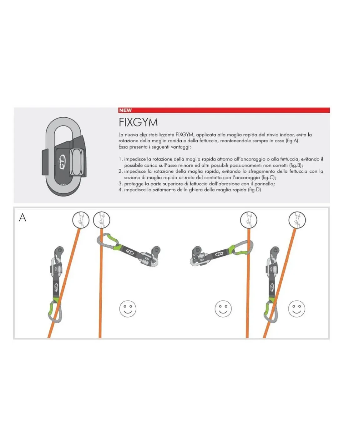 FIXGYM avoids the rotation of the quick link around the anchor or the webbing, always keeping them in axis. Prolongs the life of the webbing, preventing it from rubbing against the worn quick link and / or against the panel.