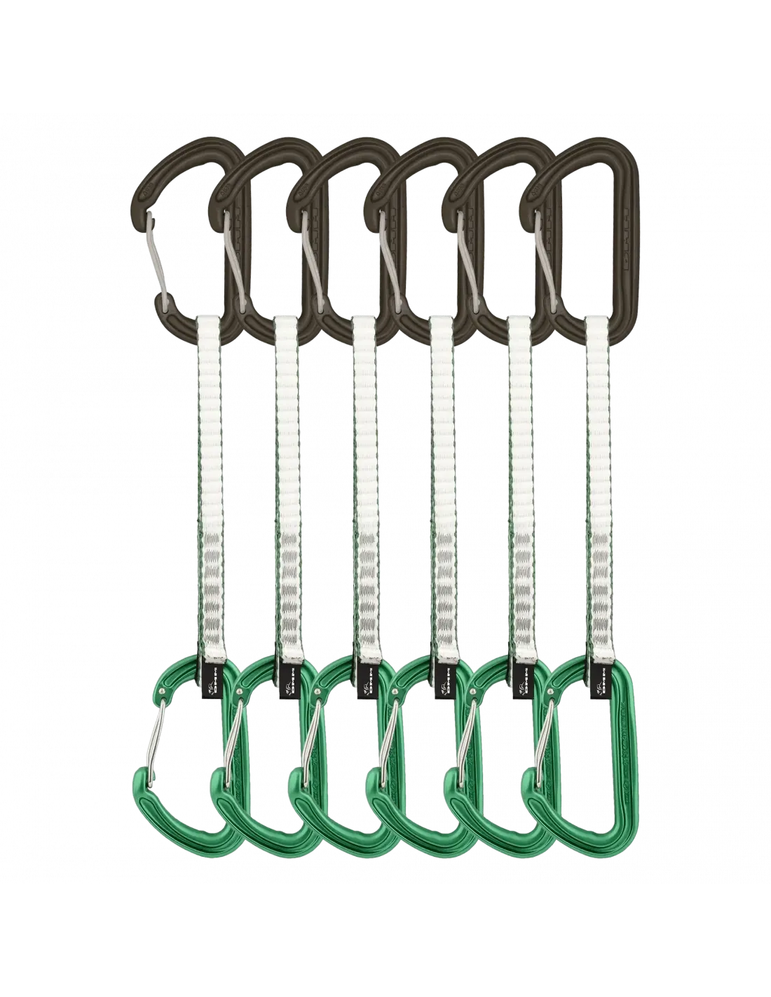 Contact with wires and bolts can mark a carabiner with sharp edges that might be harmful to ropes. The carabiners on our quickdraws are differentiated by color, allowing you to consistently use the same end for either protection or ropes.