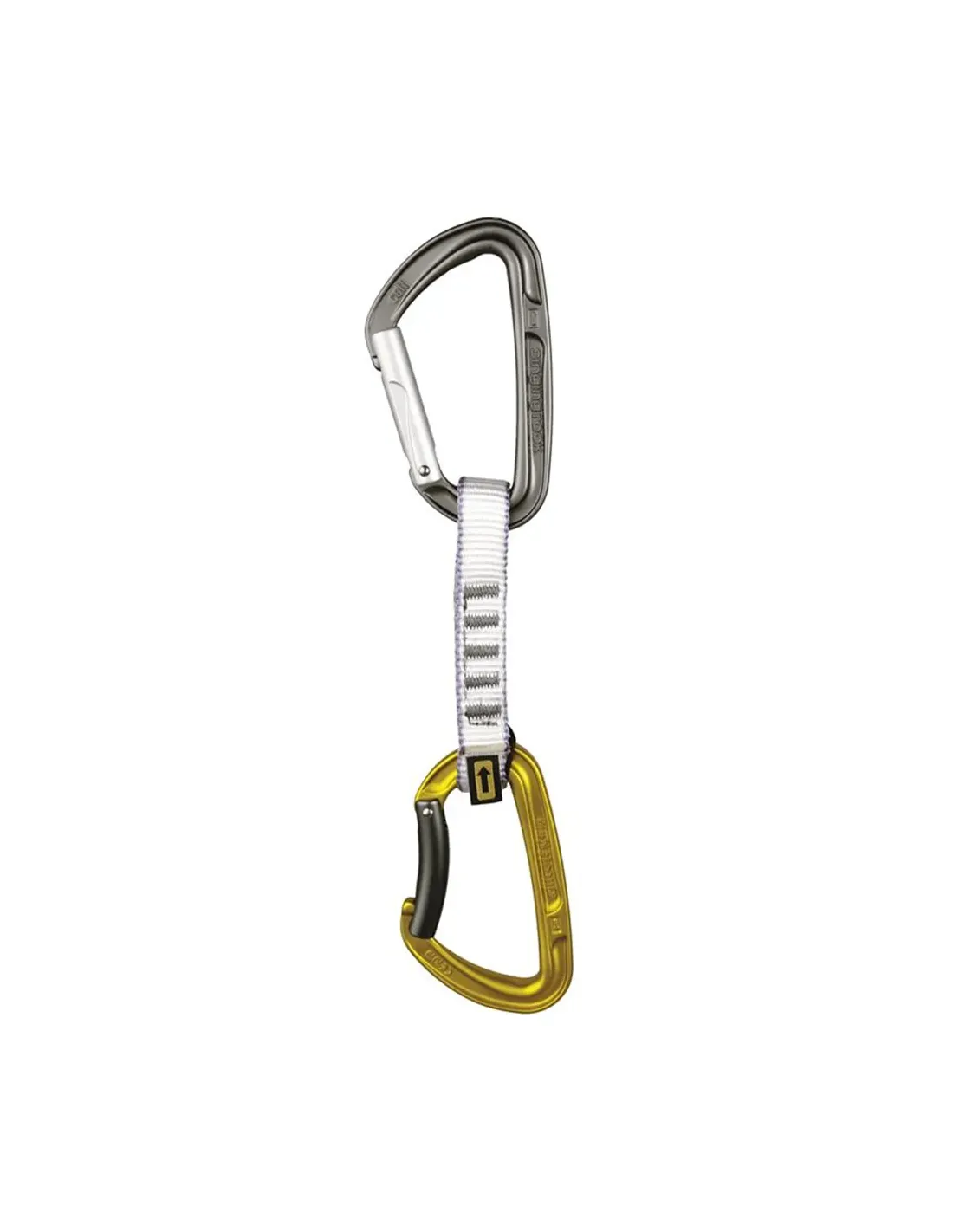 - bottom bent carabiner equipped with a rubber O-ring to hold the carabiner in the correct position and to facilitate clipping the rope