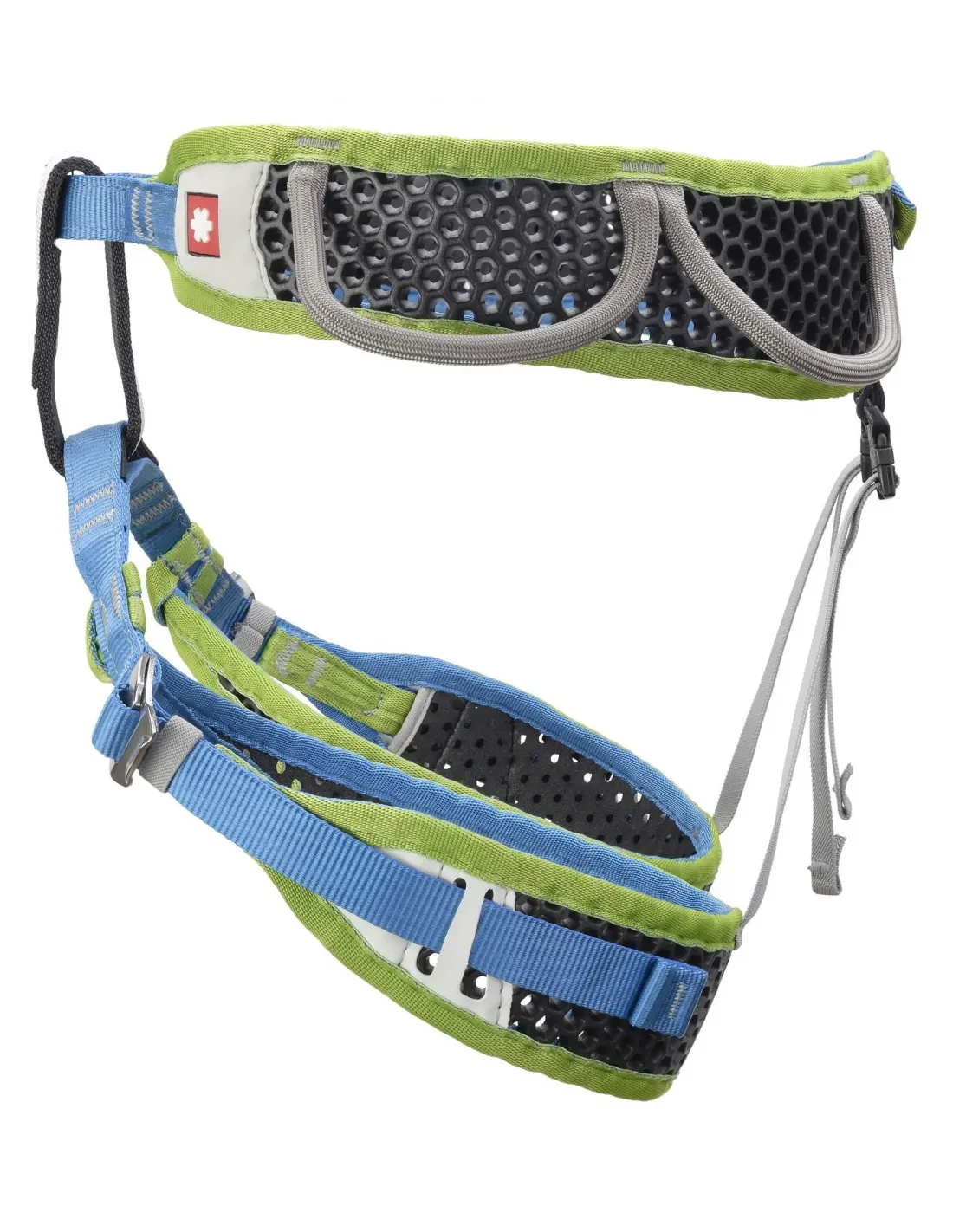 WeBee 3 is a sport climbing harness based on our patented WeBee Performance Technology thanks to which it provides perfect comfort (increased by anatomical padding), lightness, breathability  and durability all at once. The extra buckles on leg loops enable you to adjust their volume - useful when wearing thicker pants etc. Due to the construction of WeBee padding, the harness has an adjustable shape, distributes pressure evenly and is extremely breathable while keeping its light weight. The sandwich structured waist made of perforated 3D PE EVA foam with a closed-cell structure is abrasion resistant and washable. WeBee concepts is unique for its unparalleled water and sweat resistant one-layer construction without any additional lining.