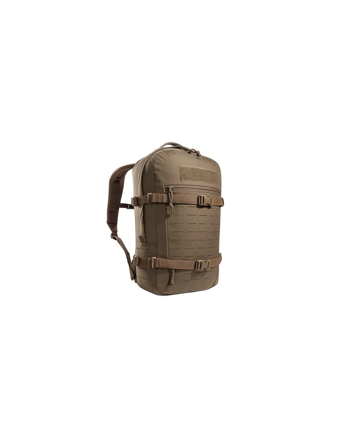 The backside of the main compartment of the daypack is lined with MOLLE hook panels for attaching compatible loop pouches. The main compartment also is big enough for a 15.4″ laptop. The flat zipper front pocket is great for documents while the laser-cut MOLLE on the front and sides allow you to add gear to suit your needs.