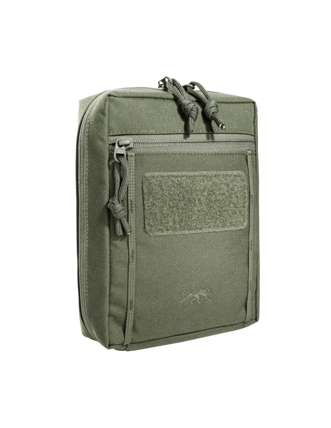 Accessory pouch with 20 x 15 x 6 cm dimensions, a large opening and the MOLLE reverse system. The inside features MOLLE hook-and-loop, a mesh pocket and elastic loops.