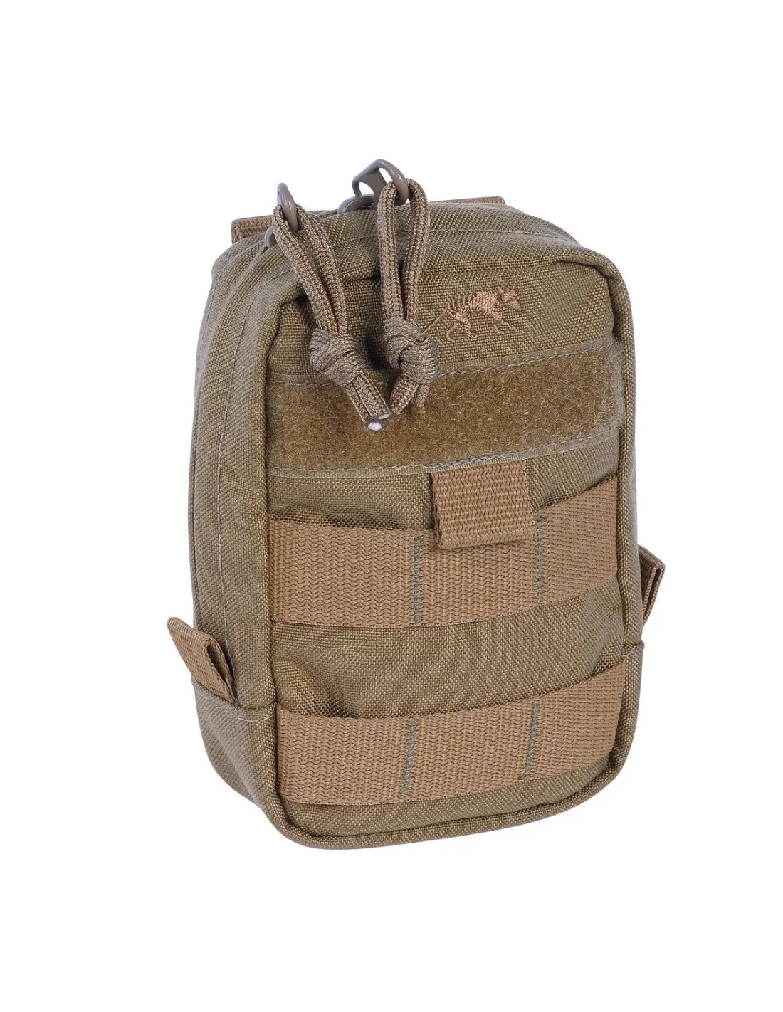 Vertical accessory pouch with MOLLE system, extra wide zipped opening and hook-and-loop strips for name tag.
