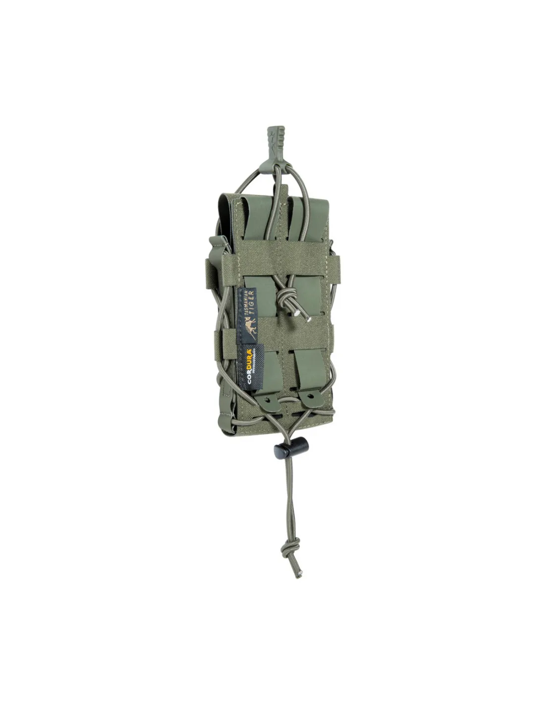 The inside of this magazine pouch is equipped with hook-and-loop areas, and thanks to a to a removable divider, two pistol magazines can also be accommodated instead of one rifle magazine. The lid is removable and can be replaced with a quick release fastener.