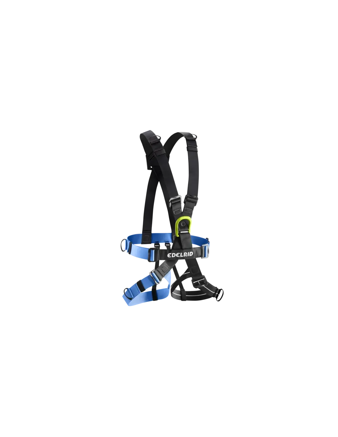 Classic webbing harness for use on high rope courses. The different colors of the shoulder, hip and leg straps make the harness intuitive to put on and enable trainers to check it quickly and reliably. The six Slide Block buckles and pull-on loops at the end of the webbing material enable the harness to be simply adjusted for an optimum fit. The labeling field and integrated RFID transponder can be used to personalize the harness and make it far easier to document its use.
