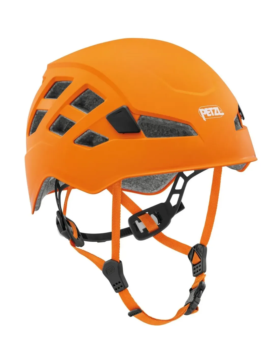 - Design provides greater coverage and is lower in the back for enhanced protection against rock fall, as well as lateral, frontal, and rear impact (Petzl’s TOP AND SIDE PROTECTION product label)