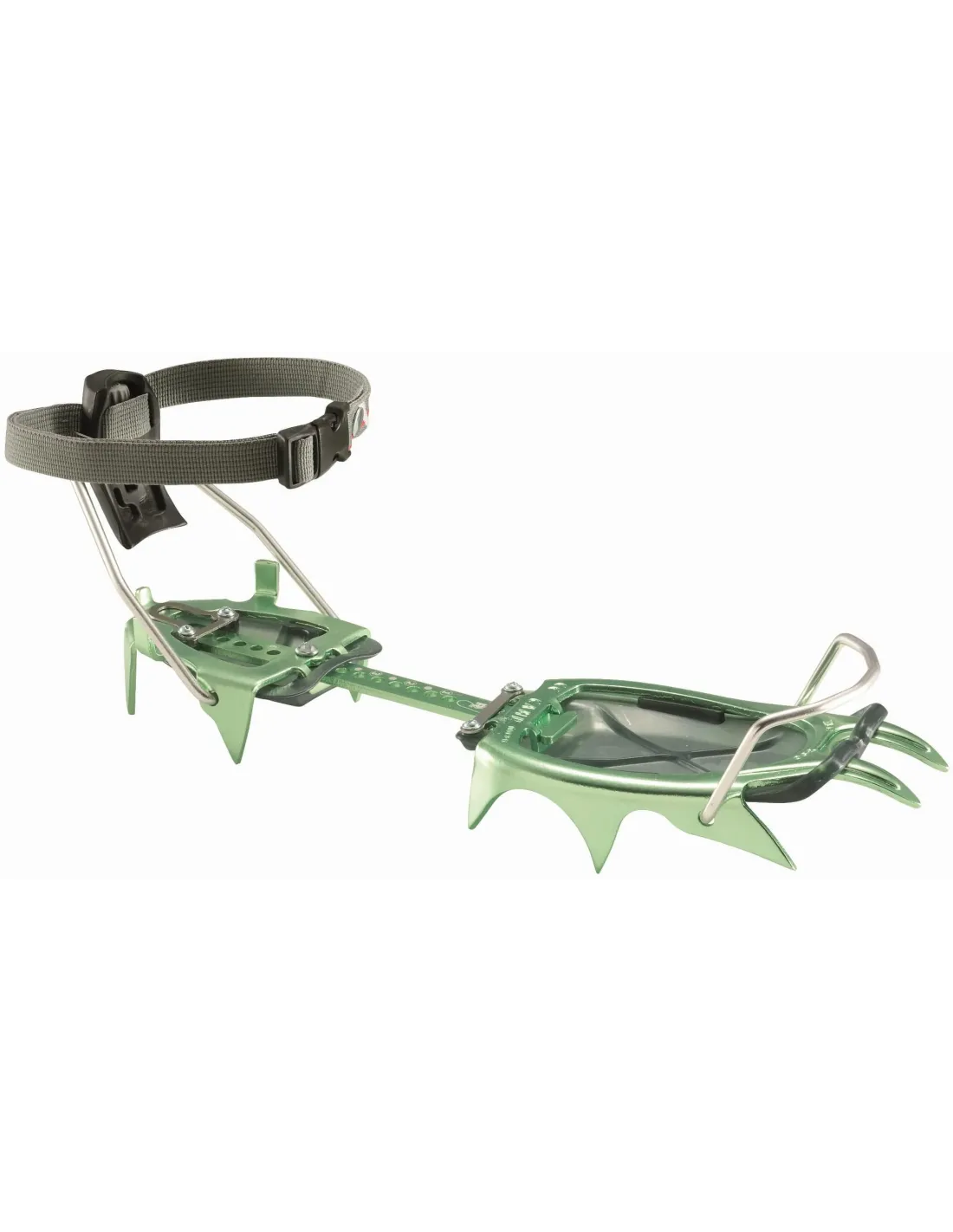 The lightest 12-point crampons in the world! Absolutely perfect for ski mountaineering and glacier travel. Innovative 3-D shaped construction (pressed - not just bent) on the front platform distributes pressure applied to one point across the entire platform significantly increasing the strength and durability of the crampon. Automatic bindings offer the most secure fit for rigid boots with full toe and heel welts, including A/T and telemark boots. While sturdy, aluminum crampons are not suitable for ice climbing or intensive mixed terrain.