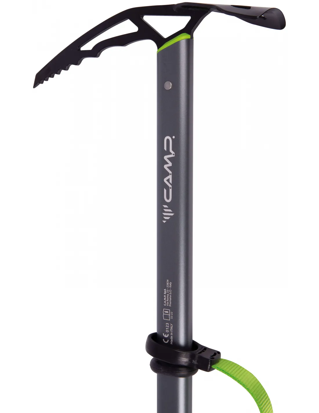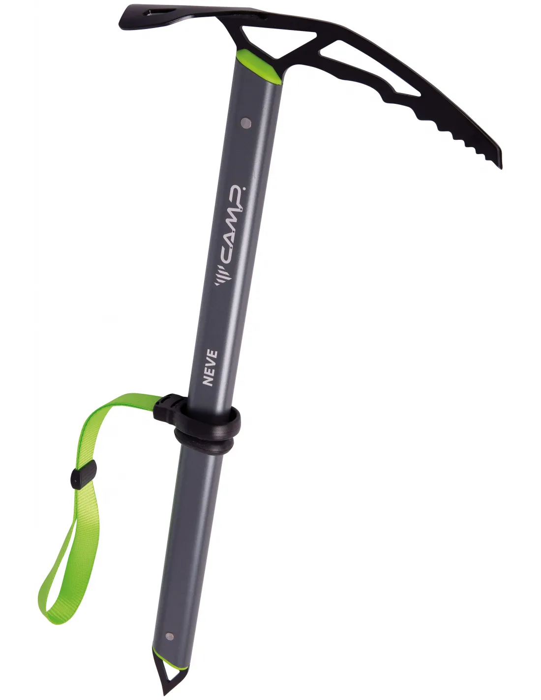 The Neve is a classic, reliable ice axe for mountaineering and glacier travel. The forged chromoly steel head has an ergonomic design for a secure grip and good comfort. The pick is engineered for solid anchoring in hard snow and a high level of control during self-arrest. The adze has an ergonomic profile and is engineered for chopping snow and ice. The steel spike plunges cleanly and the holes in the spike and head can be used with carabiners for leashes and tethers. Comes equipped with the Touring Leash (1305).