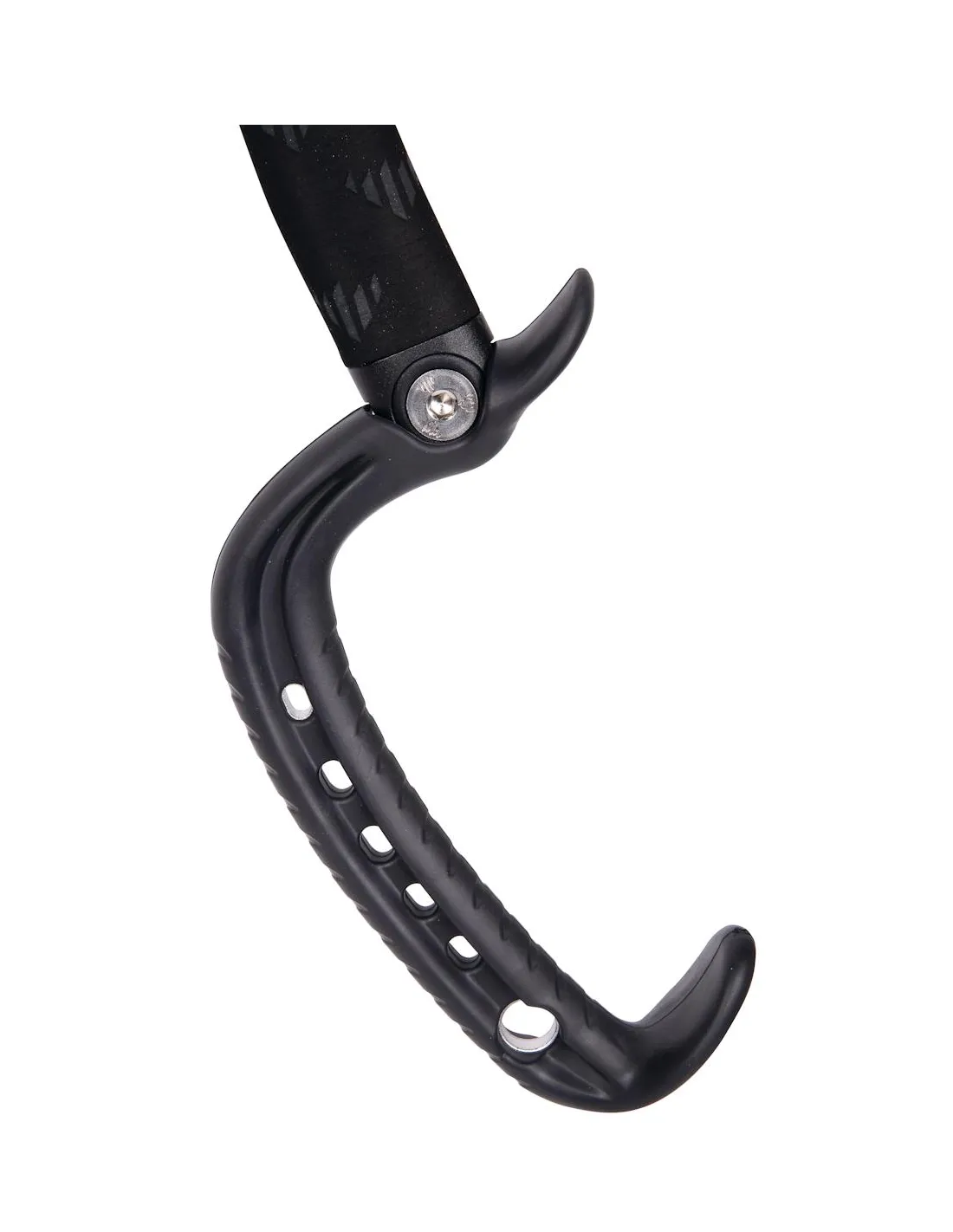 The X-Dream Total Dry is the benchmark for dry tooling and mixed competitions. The new handle combines with the new Total Dry 2.0 pick to deliver the highest level of performance for competition mixed climbers. The pick is constructed from Armox Advance ballistic steel with a hardness that exceeds 60 HRC and a constant 4 mm thickness for maximum strength. The aggressive design and tooth configuration has been engineered and fine-tuned by expert competition mixed climbers. The Total Dry handle features an elongated design to maximize the interior space and extend the reach to the maximum allowed by UIAA regulations. Unlike the standard X-Dream handle, the Total Dry handle is locked in place at the optimal position and cannot be rotated. The tool is still compatible with other X-Dream components including the standard handle, interchangeable pick options and other accessories.
