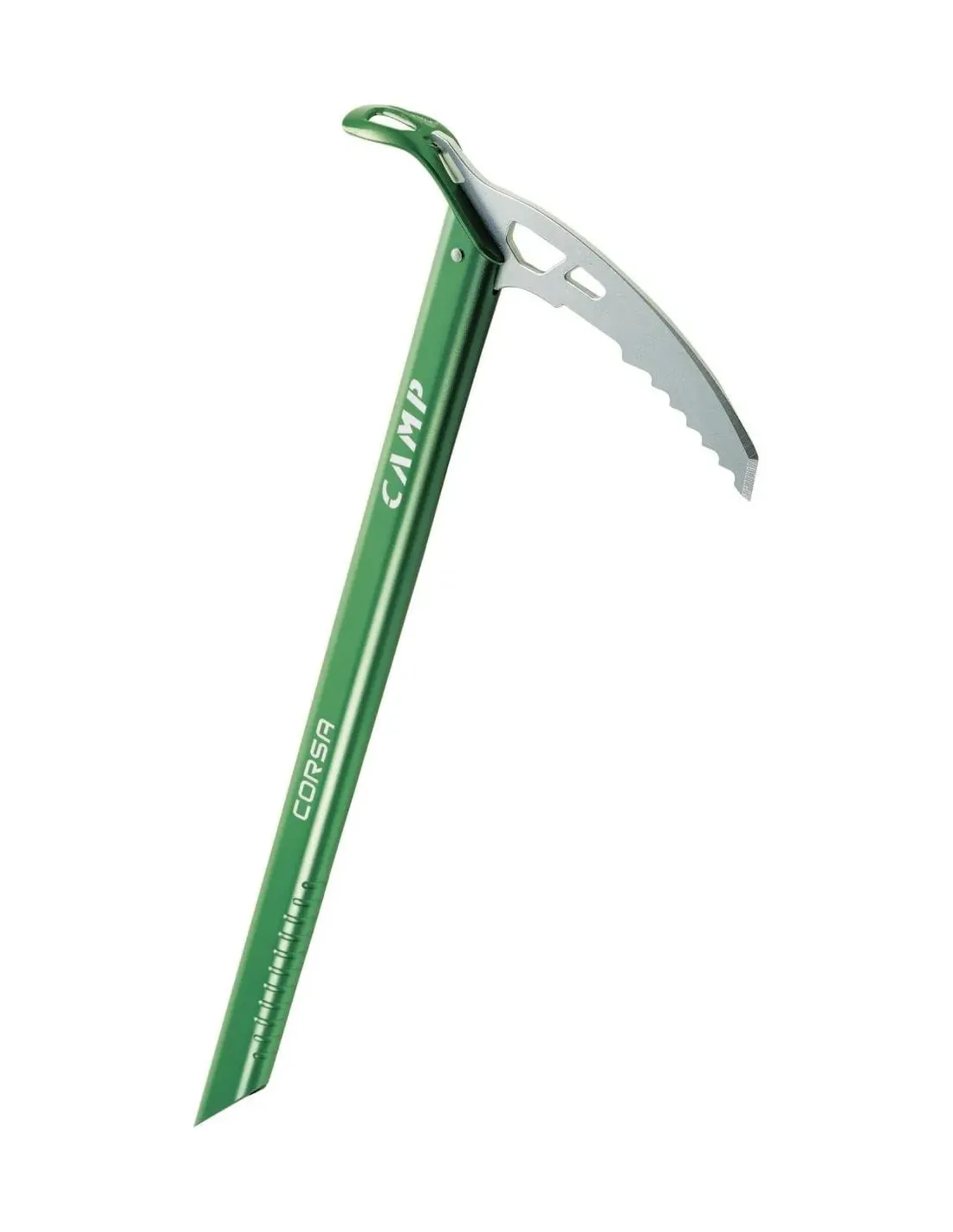 The Corsa is a hyperlight ice axe designed for glacier travel and ski mountaineering