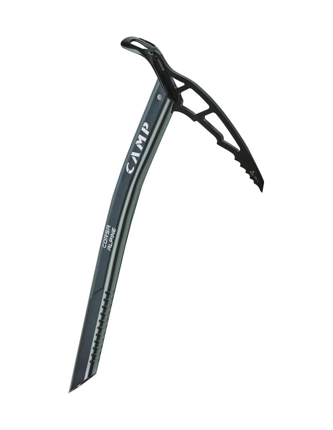 The Corsa Alpine joins the hyperlight Corsa aluminum shaft with an all-steel head for a high level of performance on technical terrain. The 45 cm length is particularly well suited for ski mountaineering and alpine adventures that require the performance of steel along with the benefits of lightweight. The single-curve shaft provides extra clearance without interfering with walking or plunging performance. A lightweight nylon spike plug keeps ice out of the shaft. The grip is machined for good handling and a small slot in the head allows for seamless integration with the Corsa leash (sold separately).