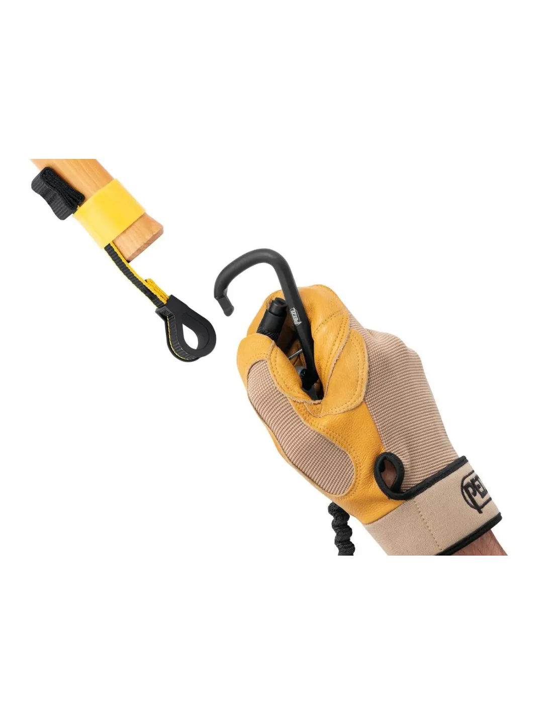 Ergonomic connection point to quickly clip and unclip the carabiner on the TOOLEASH extendable tether