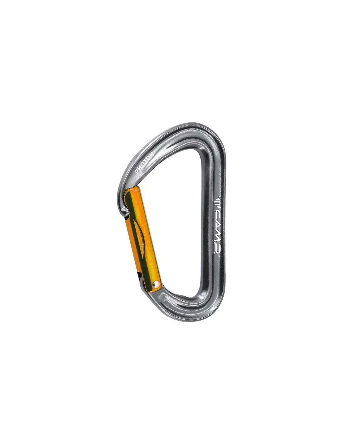 The Photon Straight Gate Locking Climbing Carabiner is a durable and reliable carabiner from Italian company Camp, designed for belaying during rock, mics and ice climbing and training on the climbing wall. The carabiner's design has a large contact area with the rope, which makes it easier to guide the rope and reduces wear. The lock is equipped with the SphereLock system, which protects against accidental snagging and release of the rope during climbing.
