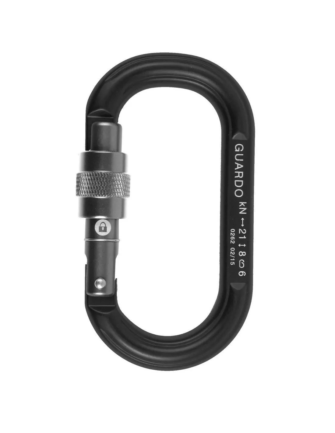 Keylock nose oval carabiner with screw gate closure, its symmetrical shape helps to keep components of a system aligned. Closure indicator pictogram engraved on the gate.