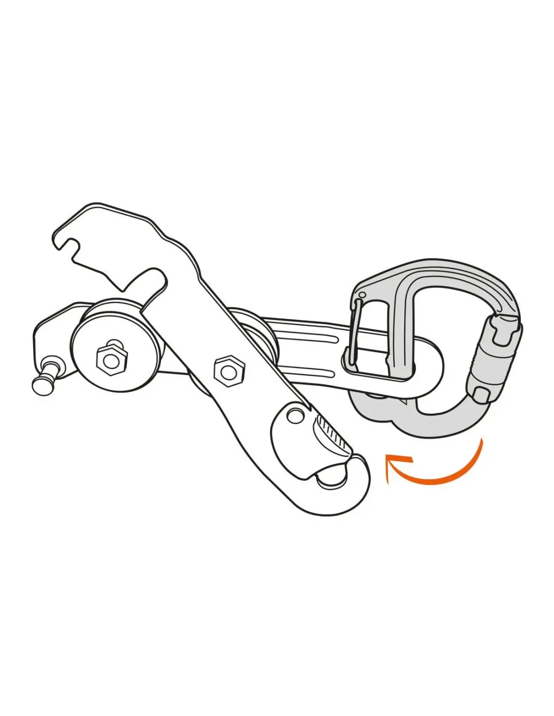 FREINO Z is an automatic locking carabiner with friction spur, designed for STOP (D009AA00) and SIMPLE (D004AA00) caving descenders. It allows the user to increase or control the braking action of the descent. It facilitates creation of a tie-off. FREINO Z can be rotated in order to make the descender loss-proof when transferred from gear loop to semi-circular carabiner.