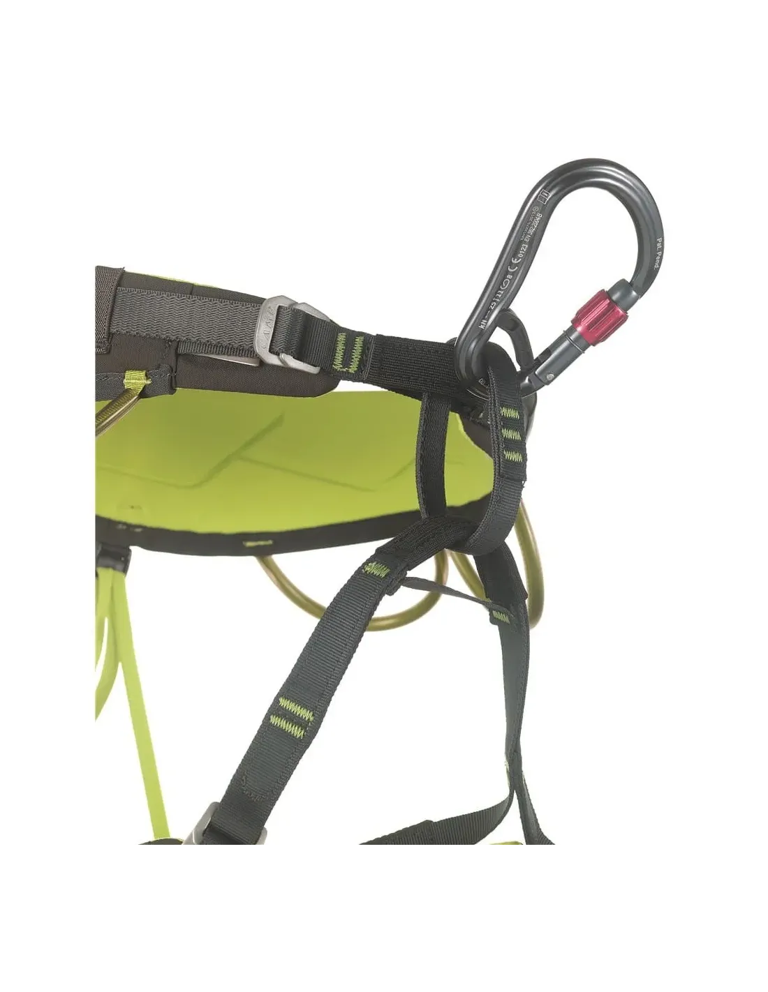 Its innovative design perfectly combines the strength of the D shape with the large width of an HMS carabiner.