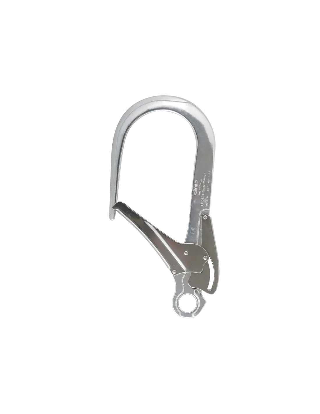 Auto-locking aluminium connector with large opening.