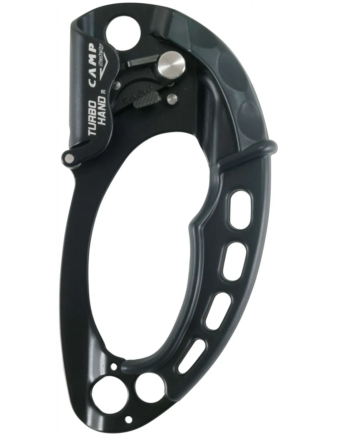 A stainless steel rope guide (Turbohand Guide, sold separately) can be attached to the bottom of the handle to align the rope for long ascents.