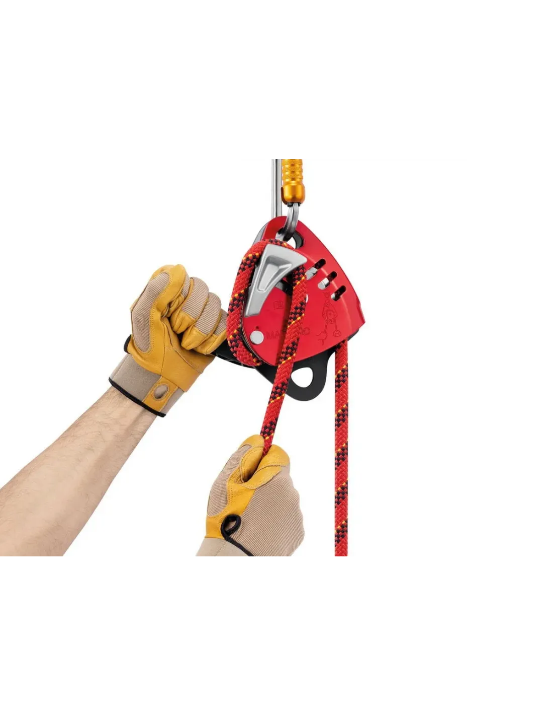 • integrated brake on the device to adjust the friction based on the load and the rope diameter