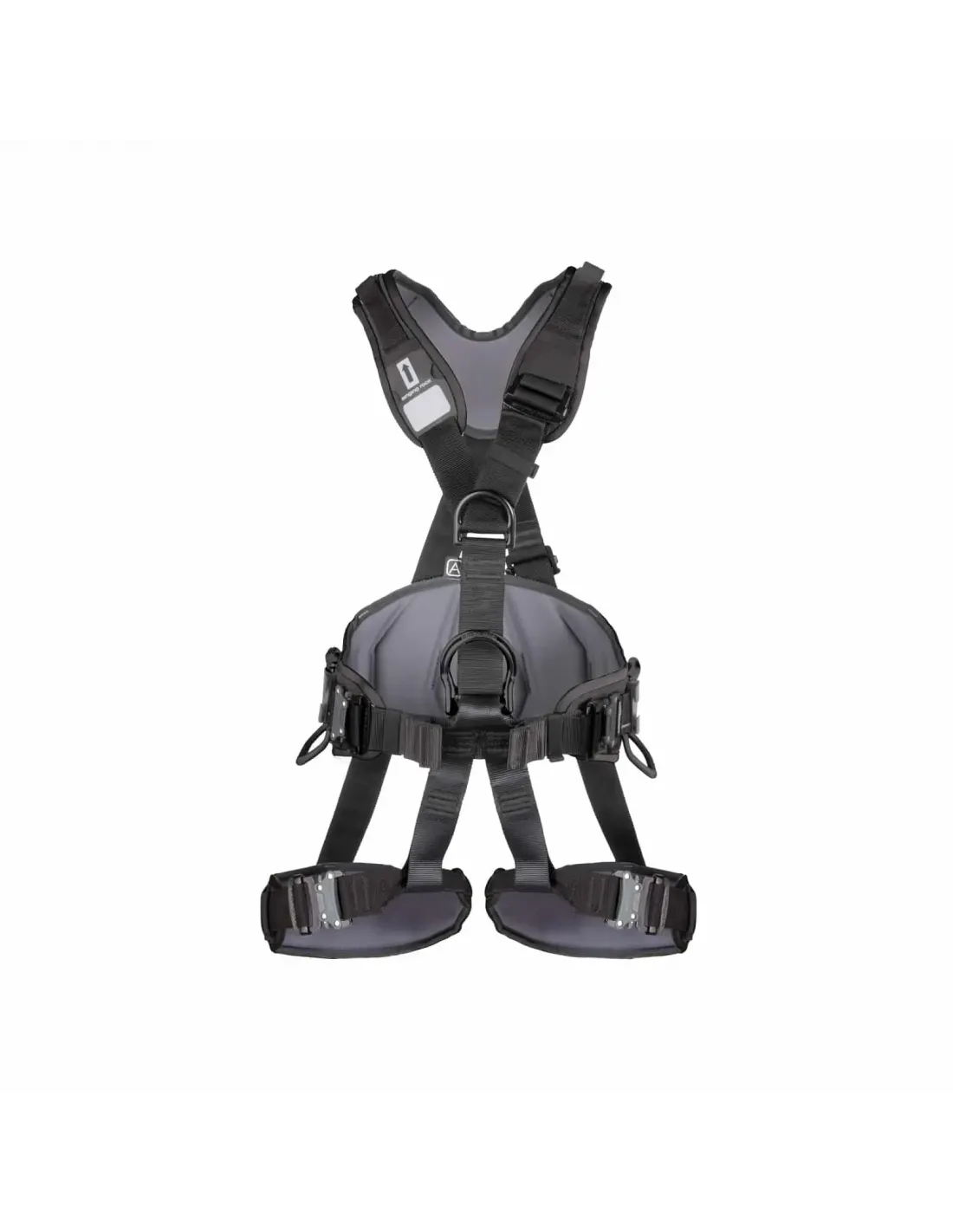 Fully adjustable harness for rope access with a padded wide waist belt, leg loops and shoulder straps. Suitable also for work positioning, fall arrest and work restraint situations