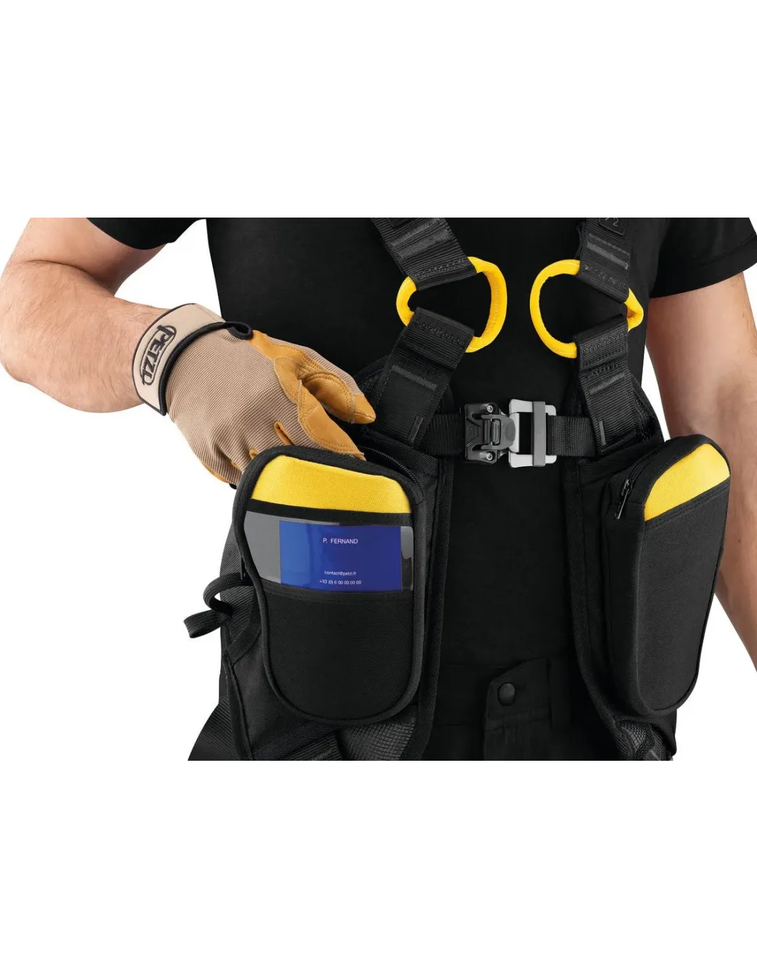 - two zippered pockets, one on each side of the harness, for stowing small items