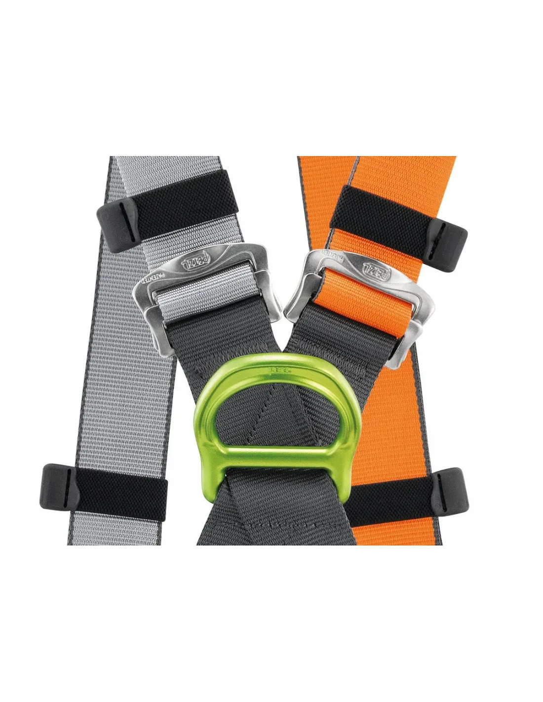 - Wide ventral attachment point is color-coded green, making it easier to install the JOKO or AVENTEX lanyards and allowing for a quick visual check; the raised position of the attachment point limits the risk of the client flipping